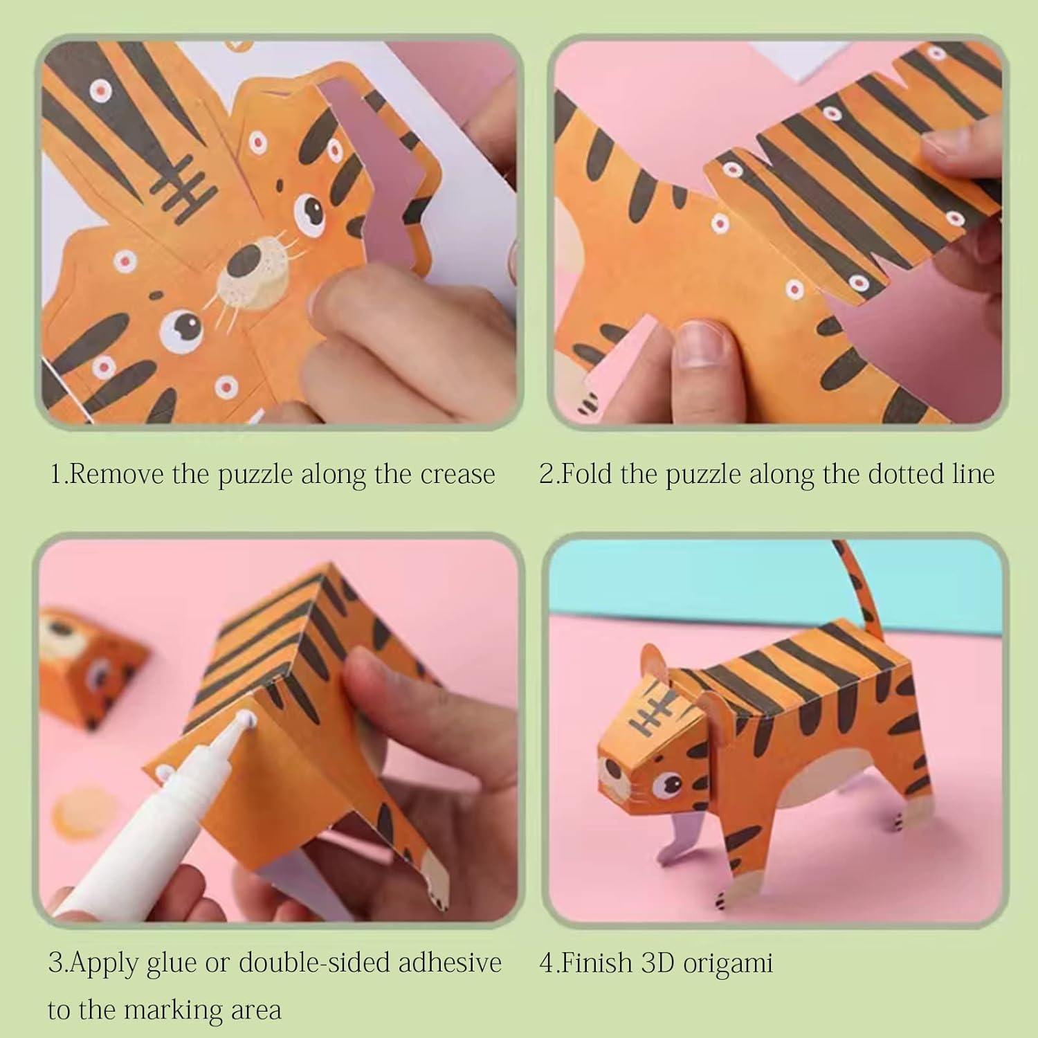- Clean and Safety:Our origami paper kit is made of high-quality materials, eco-friendly, odor-free and soft edges, safe for kids. We use safe paper-based acrylic glue to prevent the traditional liquid glue from touching children, which is cleaner.Of course,you can also use liquid glue without any impact