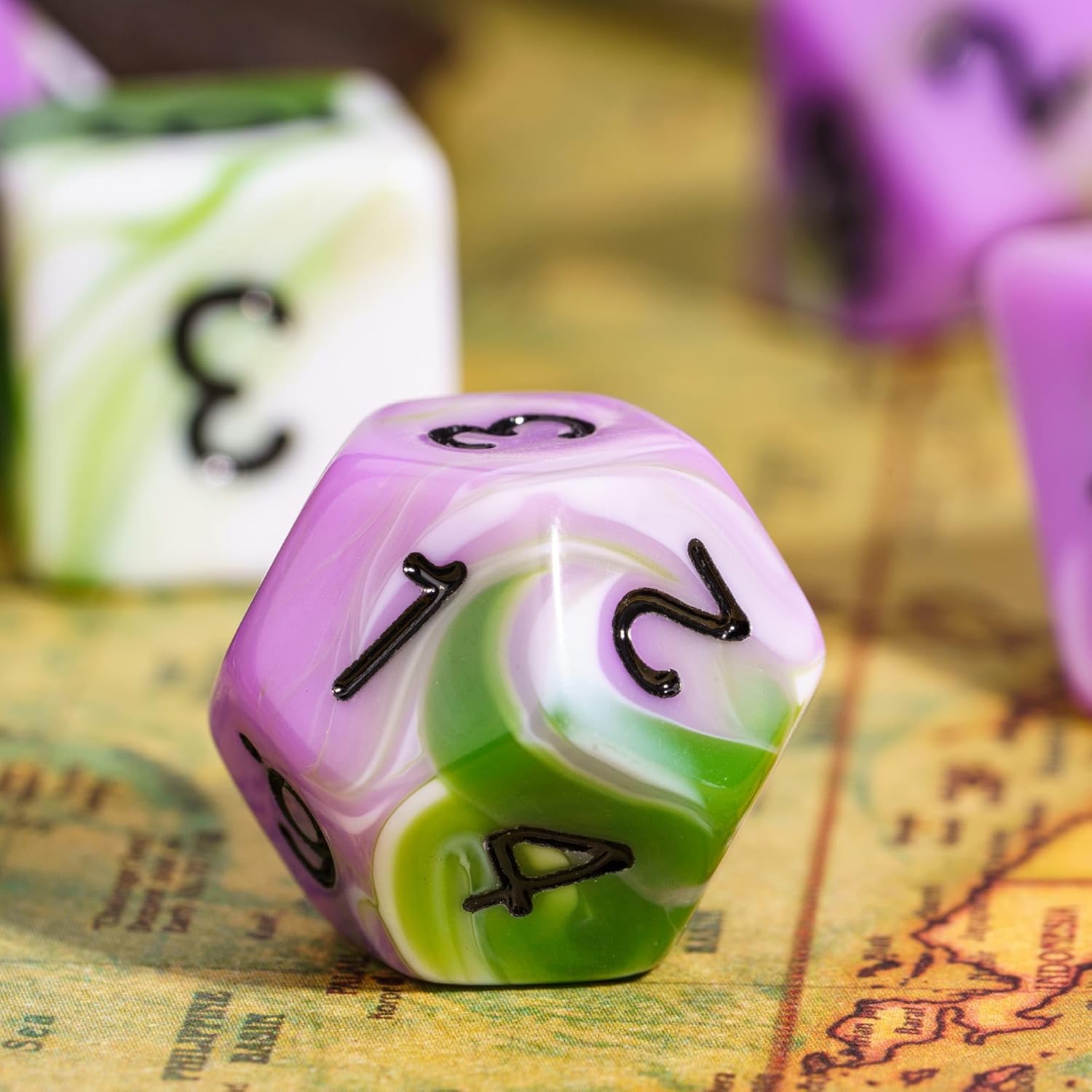 - Beautiful Color: Purple, green and white with pattern of marbles, looks bright and beautiful. Makes a Great Gift for a Friend/Father/Siblings,Fellow Player,or Dungeon Master.