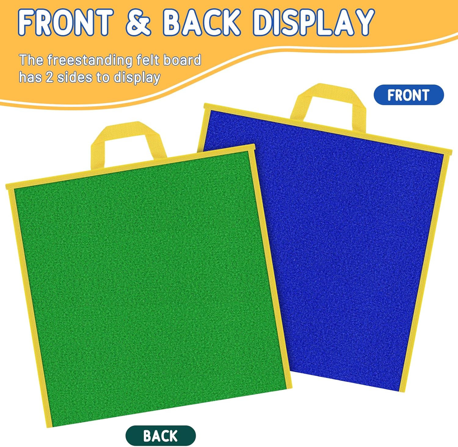 - Double-Sided Design for Versatile Use: This felt board features two vibrant colors (blue and green) on each side, making it perfect for interactive storytelling, preschool activities, and creative play. The top handle makes it easy to carry, and the foldable base allows it to stand on the ground or hang on the wall for convenience.