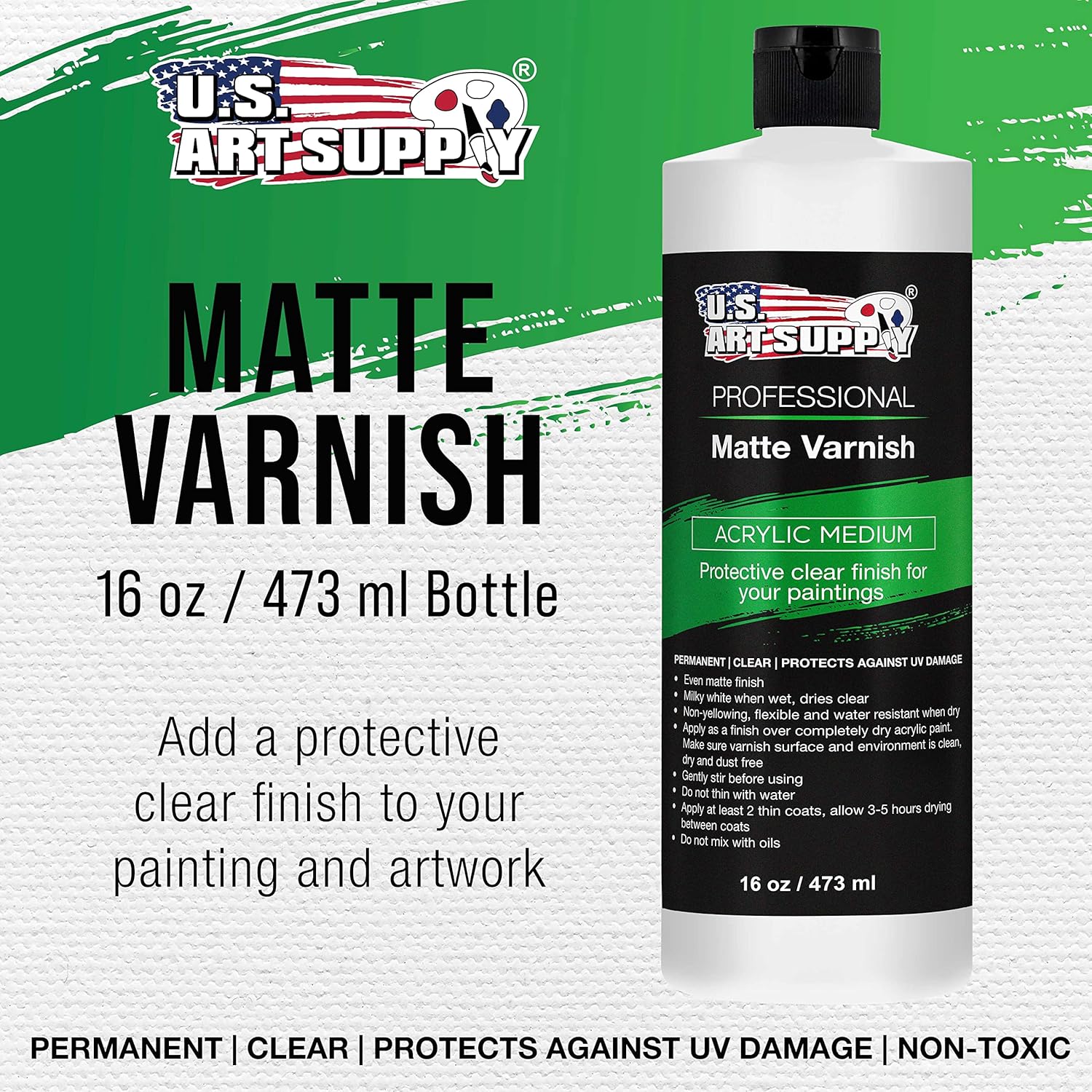 U.S. Art Supply 16 oz Matte Acrylic Varnish for Acrylic Painting, Permanent Clear Protection, Reduces UV & Photography Glare