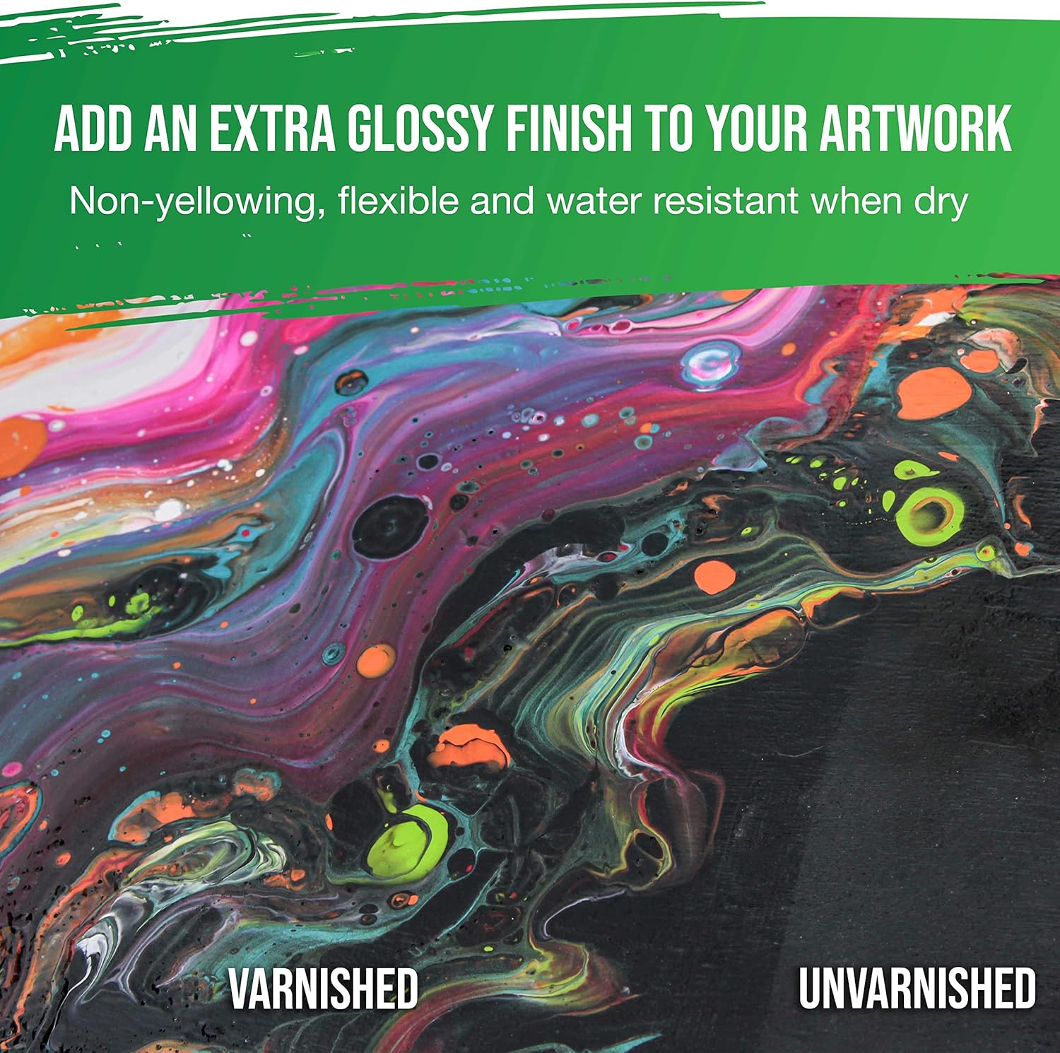 - Easy Application on Dry Acrylics: Over two coats recommended. Simply apply to seal and enhance your artwork with a glossy sheen.