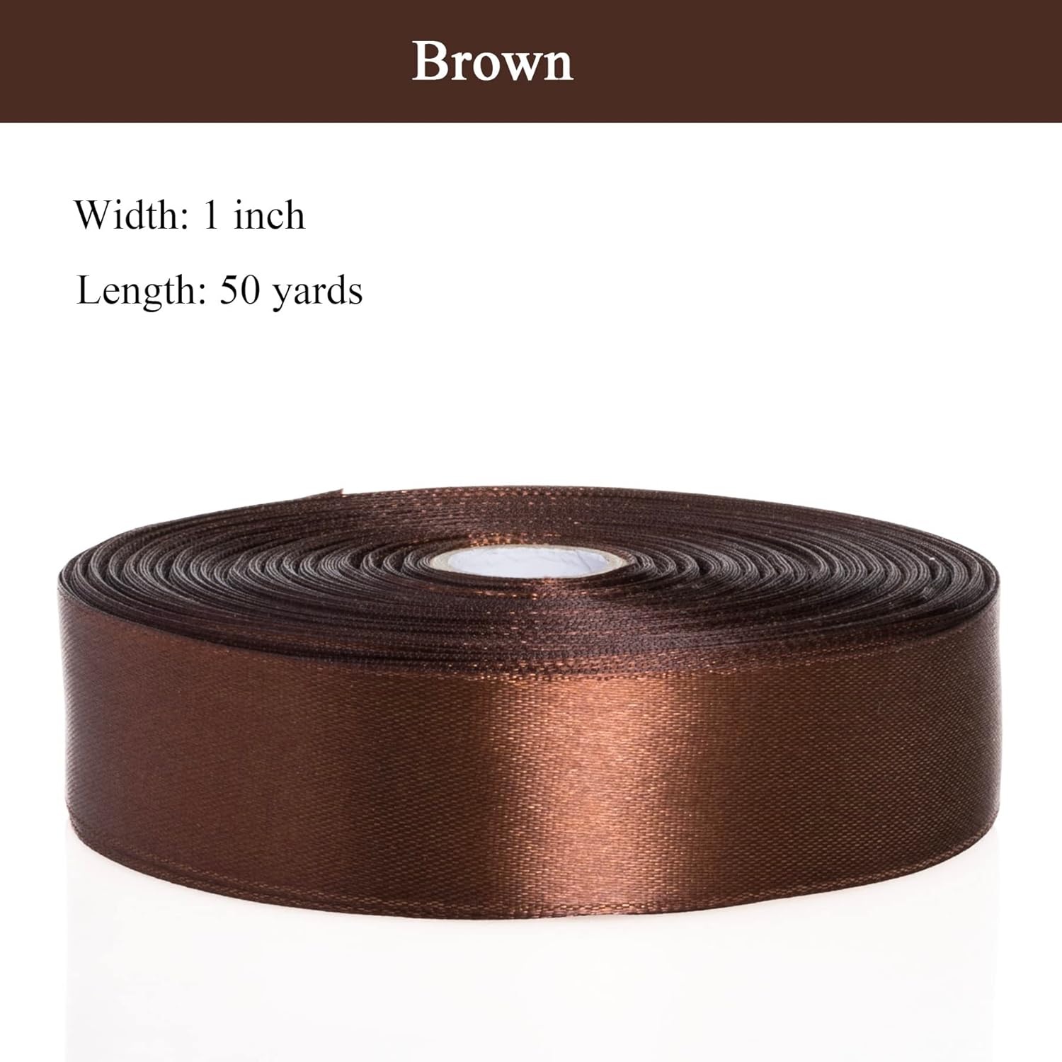 1 Inch Brown Solid Satin Ribbon, 50 Yards Craft Fabric Ribbon for Gift Wrapping Floral Bouquets Wedding Party Decoration