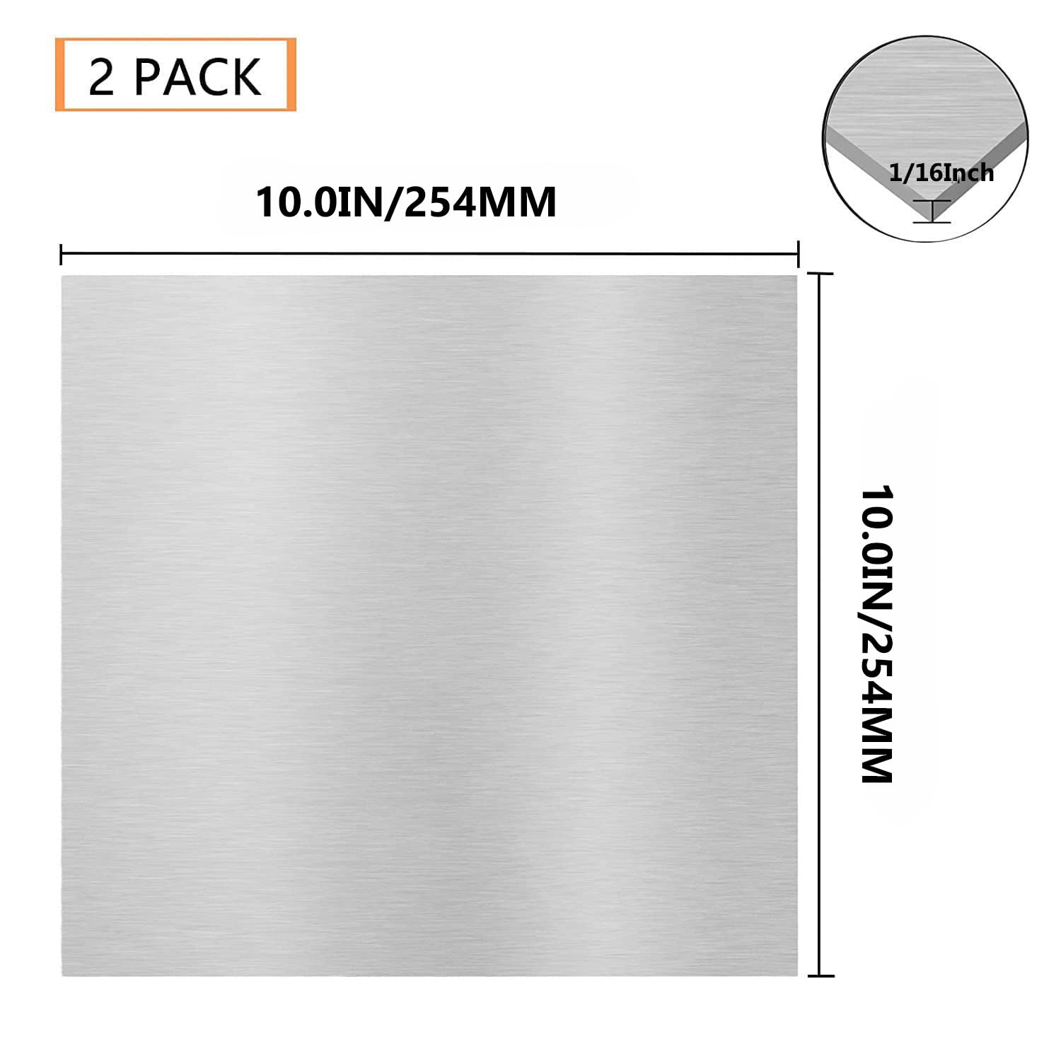 - 【6061-T651 Aluminum Sheet Size】2 Pack 10”(L)x10”(W)x 1/16” (1.5mm)(thick)