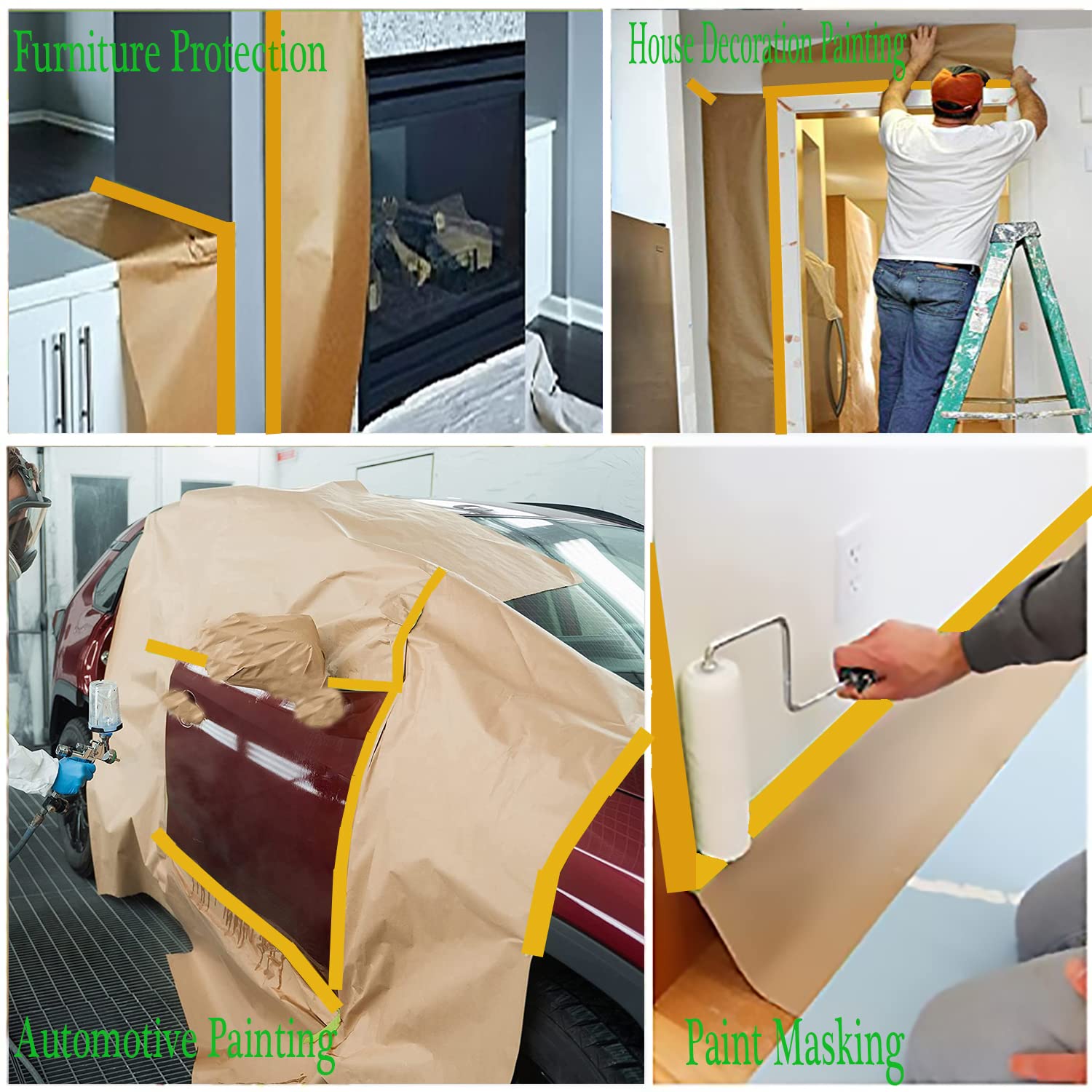 - 【Strong Adhesive & Clean Removal】Automotive paint masking paper is strong and stable, leaves no residue after removal, leaving super sharp lines, no bleed, without sticky residue.compared with most other masking papers on the market, Our masking tape is wider and better adhesionr, masking paper less prone to tearing, with premium waterproof and dustproof effect, better protected,