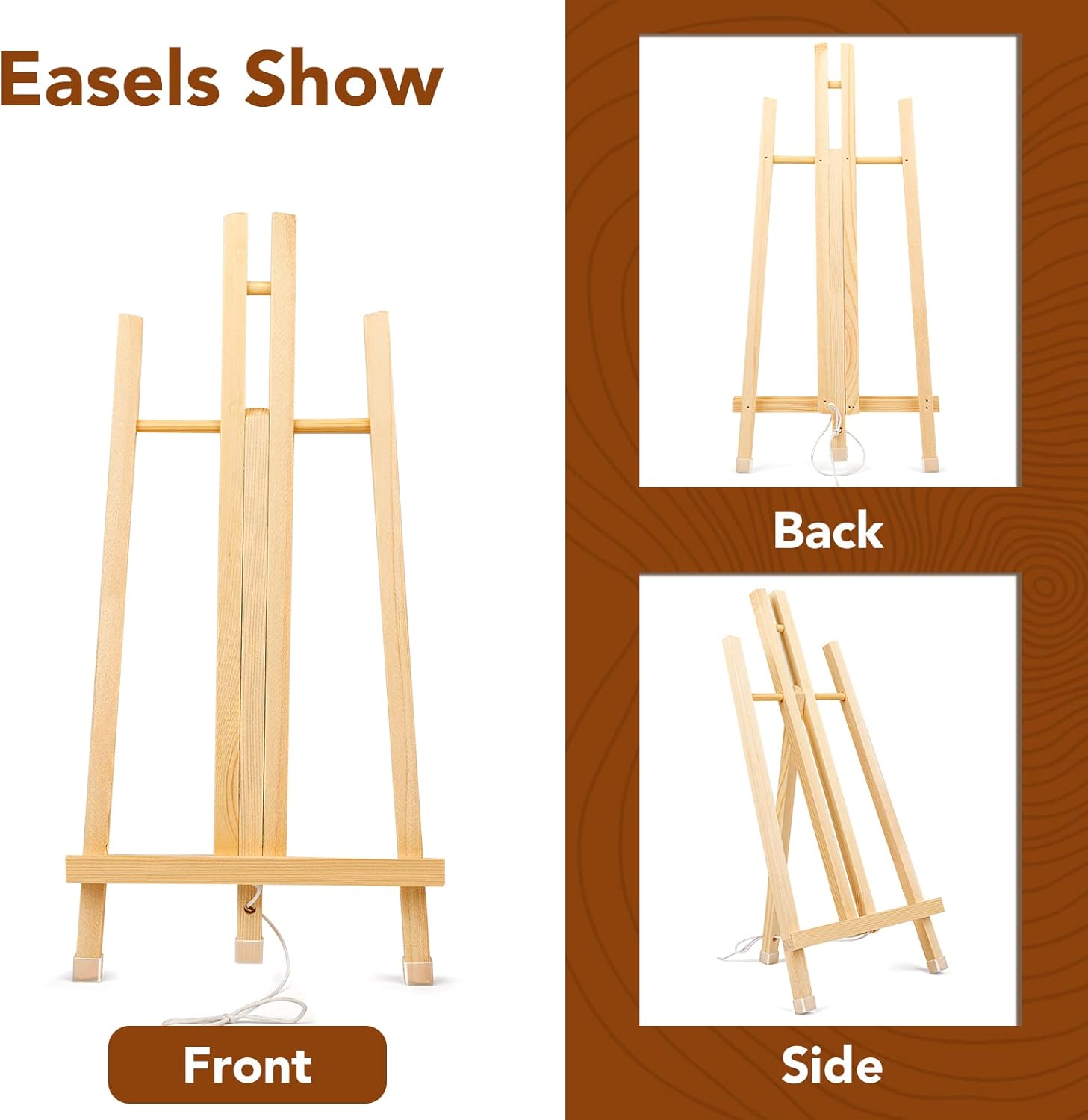 - 【High quality】: 3pcs 15"x 7.5" inch sturdy "A" wooden easels. Our easels are made of sturdy pine and last a long time. 9 pcs silicone anti-slip protectors to keep the easel balanced and not easy to fall off. no deformation or crack. Polished surface and rounded edges will not hurt your hands.
