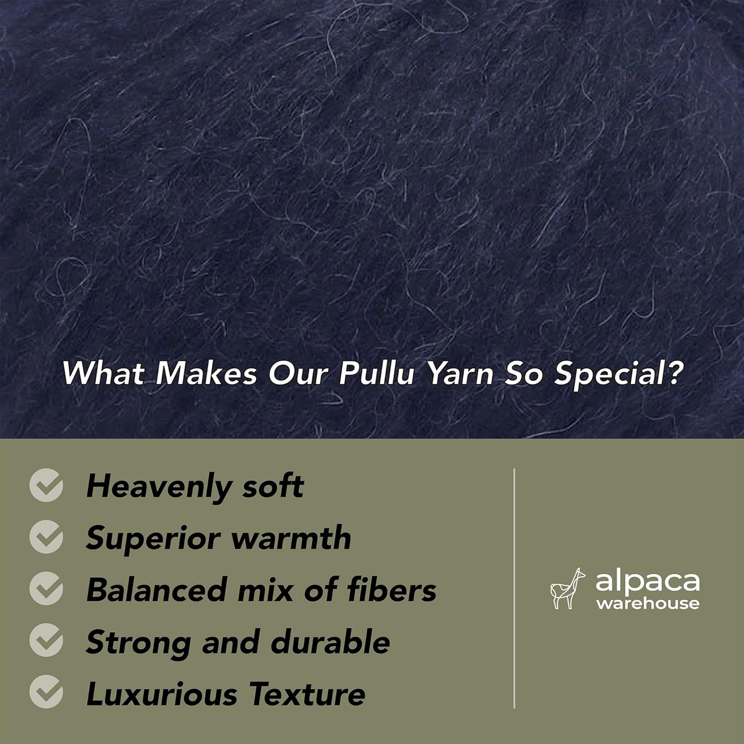 Pullu - Baby Alpaca Merino Wool Yarn Set of 3 Skeins (150 Grams) Worsted Weight - Sourced Directly from Peru - Heavenly Soft and Perfect for Knitting and Crocheting (Navy Blue)