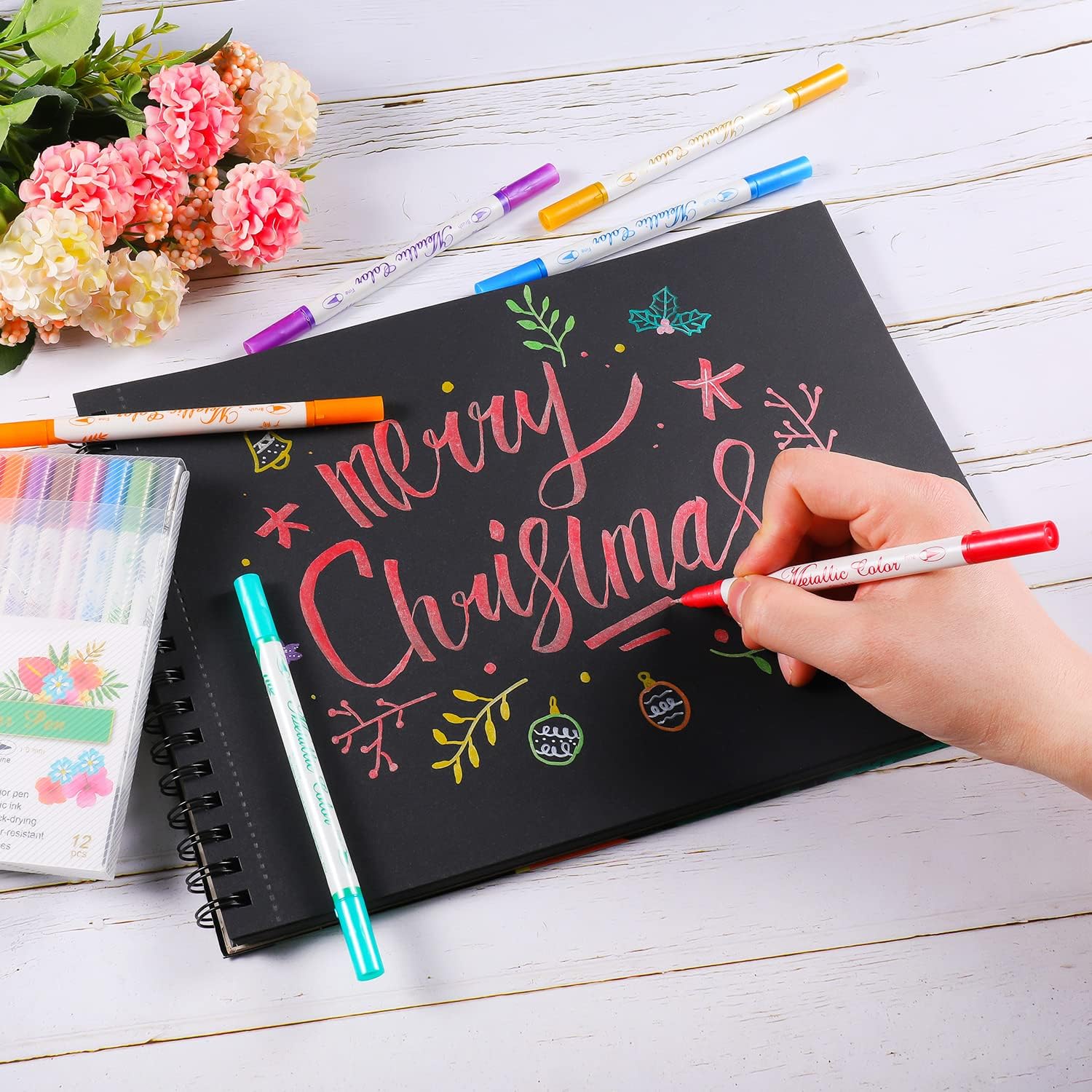 Sunshilor Metallic Markers Dual Tip Metallic Marker Pens Brush and Fine Point Pens for Black Paper, Rock Painting, Easter Egg, Halloween Pumpkin, Card Making, Metal, Ceramic, Wine Glass