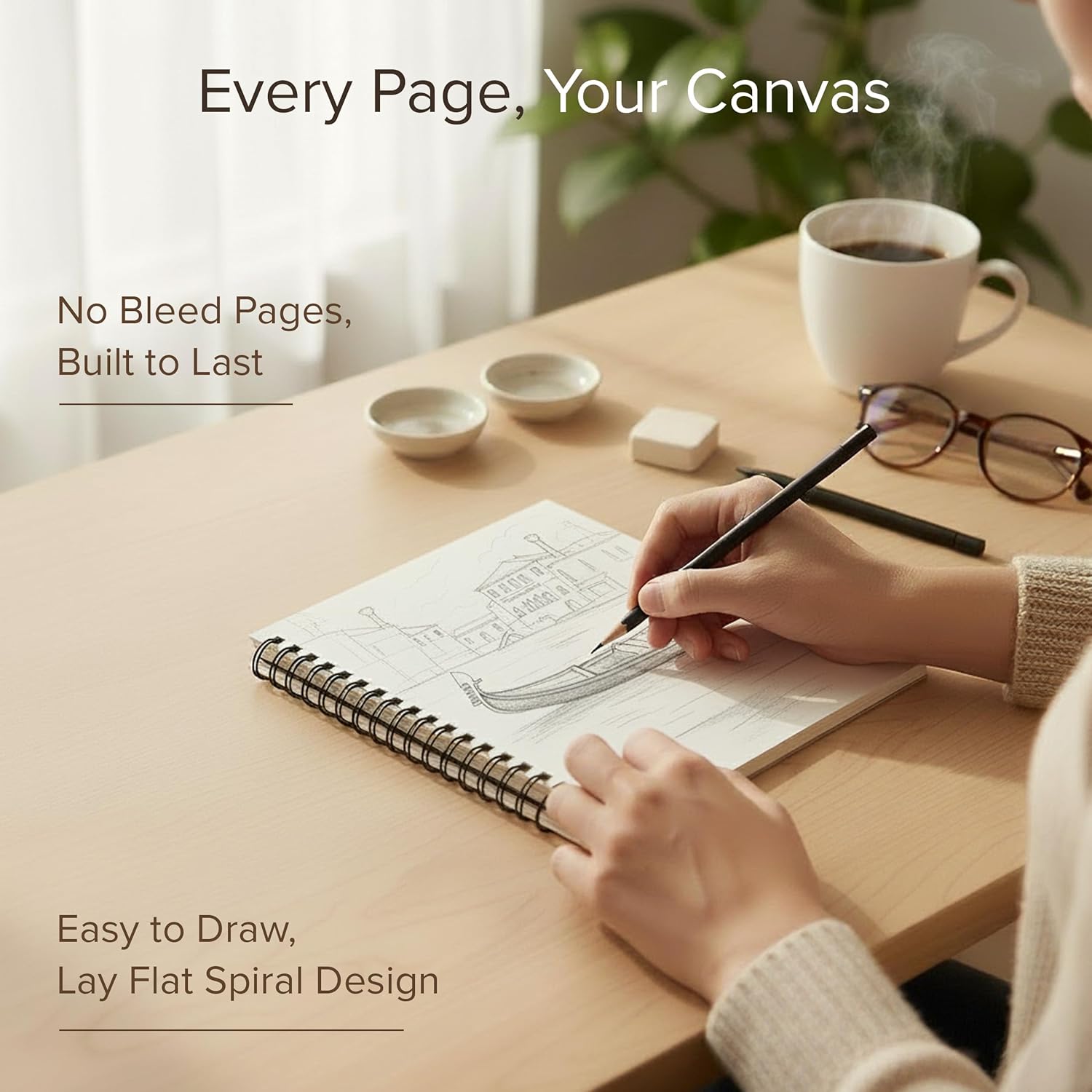 Artist’s Sketchbook Hardcover – 200GSM Very Thick Paper – Spiral Sketch Book for Drawing and Mixed Media – Sketch Pad, Art Book - 5.8 x 8.5, 40 Sheets / 80 Pages