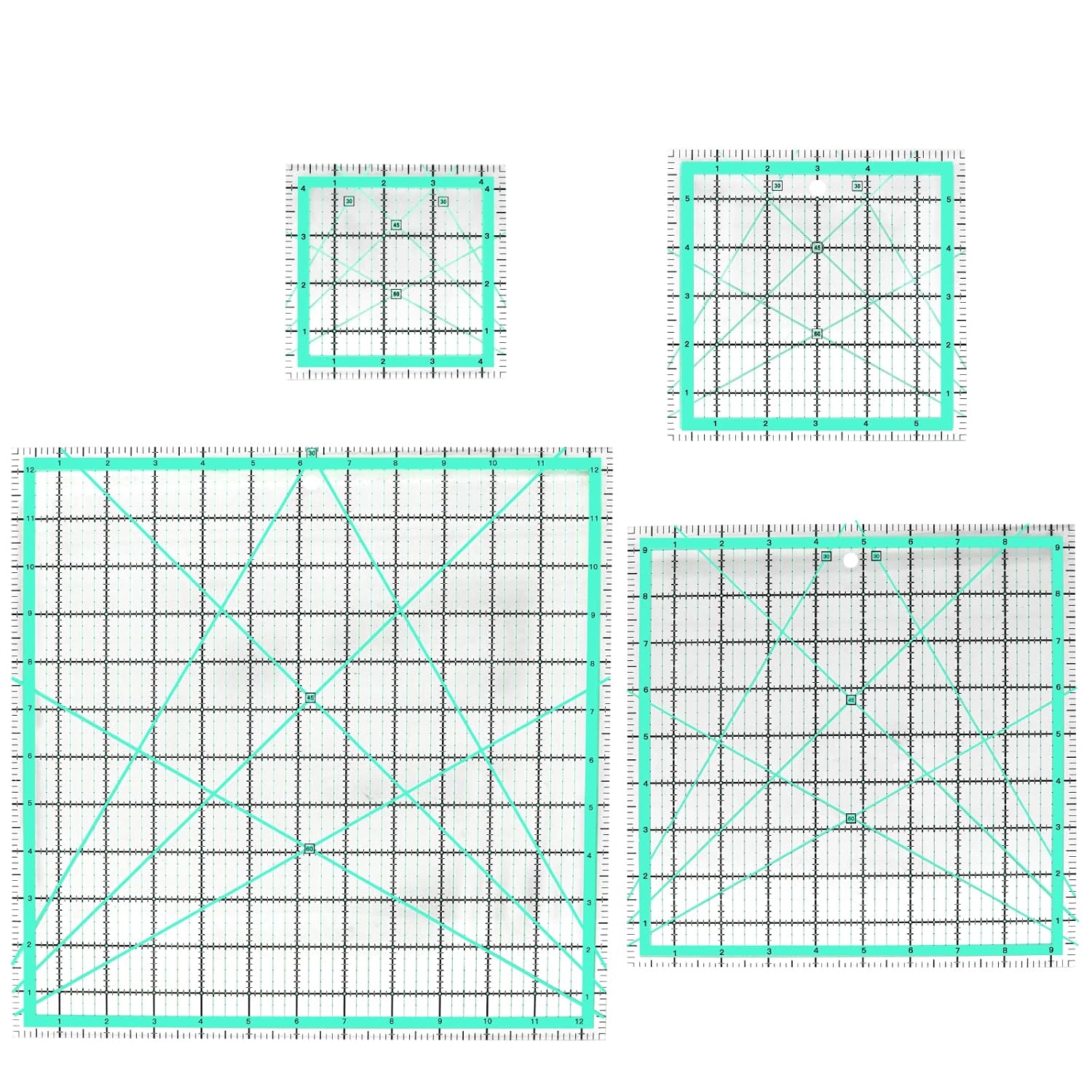 - 4pcs square quilting ruler: 12.5”/ 9.5”/ 6”/ 4.5”