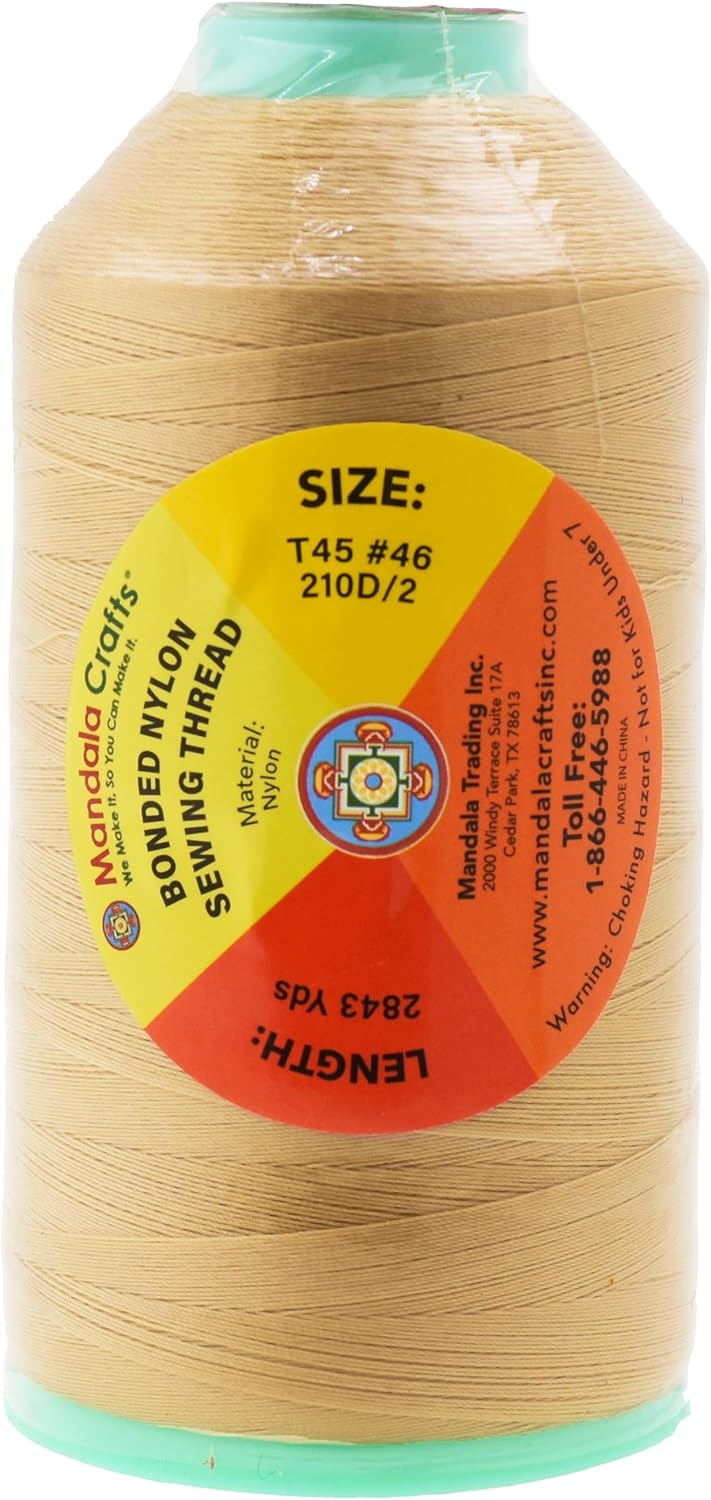 Mandala Crafts Tex 45 Bonded Nylon Thread for Sewing - 2843 YDs T45 Heavy Duty Tan Nylon Thread Upholstery Thread for Leather Jeans Weaving, T45 #46 210D/2