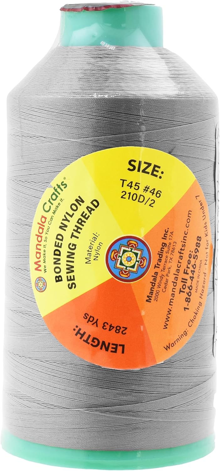 Mandala Crafts Bonded Nylon Thread Gray Heavy Duty Sewing Threads - 2843 YDs Size 46 210D T45 Tex 45 Thread for Leather Jeans Weaving Outdoor Marine Upholstery Threads