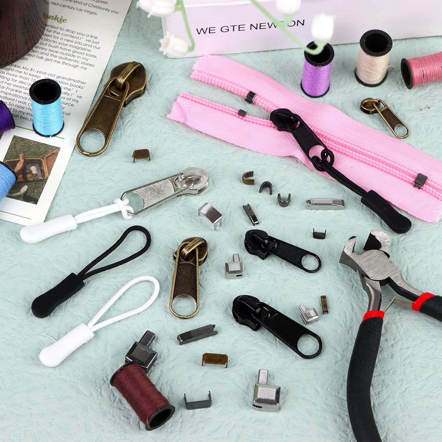 275 Pcs Zipper Repair Kit - Replacement Zipper Pulls & Sliders Set with Install Pliers for Jackets, Coats, Sleeping Bags, Backpacks