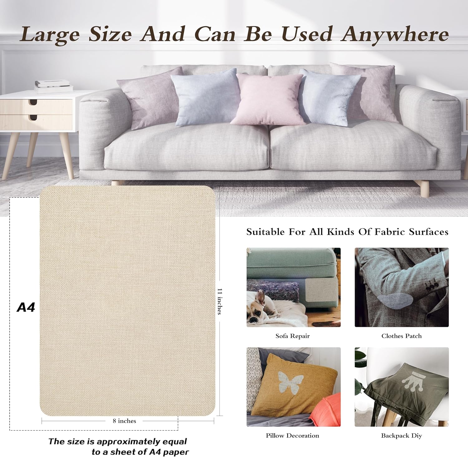 - HIGH QUALITY PRODUCTS: Coarse Linen Patch and strong adhesive. No glue residue, perfect fit in seconds. Brand new upgraded, with more glue, firmly press on the broken parts, the glue reaches the best outcome after 24 hours. Linen is durable, non-pilling, non-fading, non-shrinking and is suitable for all seasons.