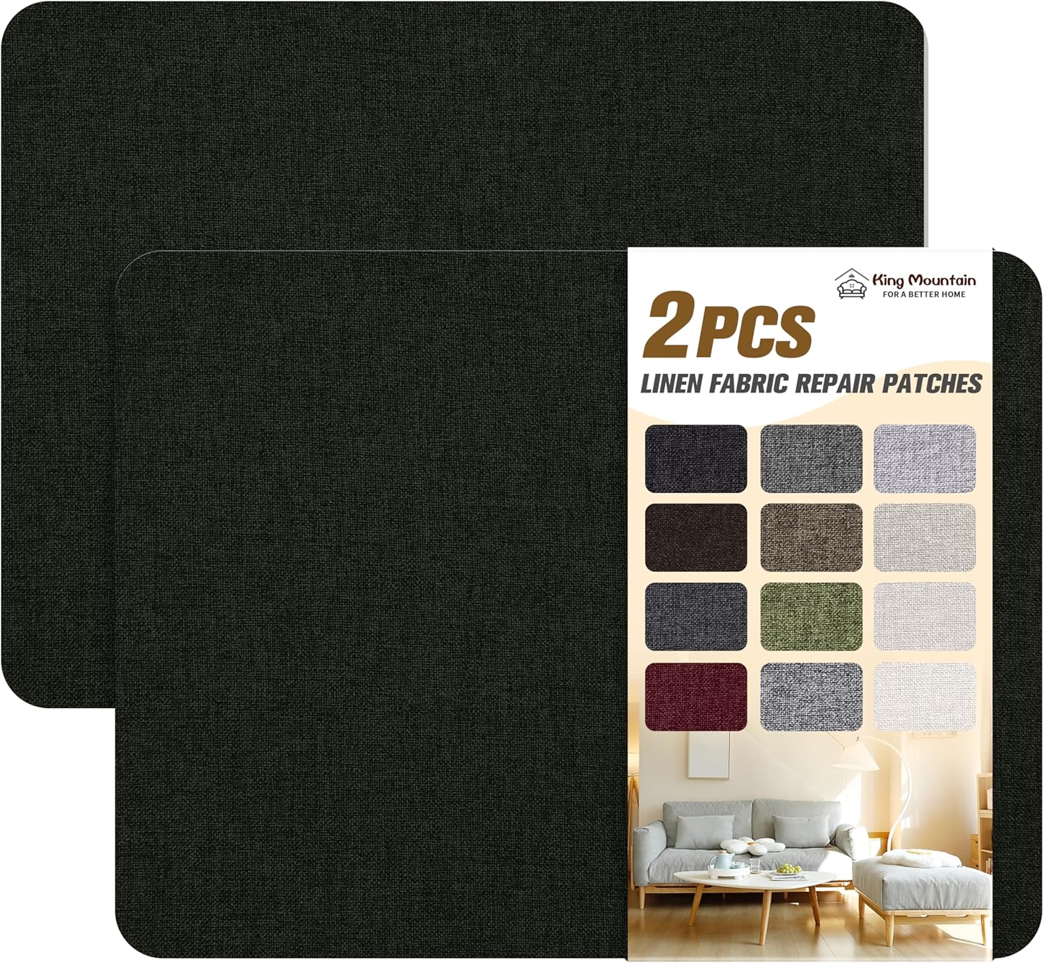 KING MOUNTAIN Fine Linen Repair Patches, Self-Adhesive Fabric, 8X11 Inch 2 PCS, Multi Color, for Sofa and Clothes (Charcoal Black)