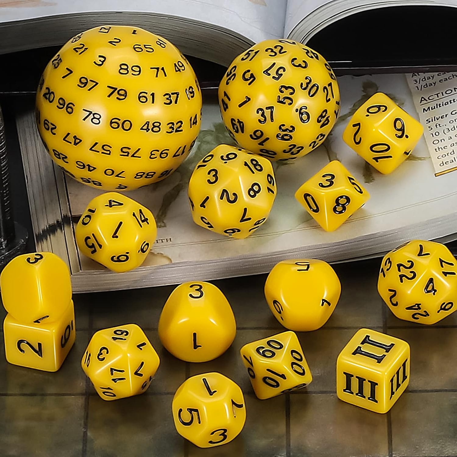 CiaraQ DND Polyhedral Dice Set (15pcs) D4-D100 Game Dice with Dice Bag for Dungeons and Dragons Role Playing Table Games (Yellow & Black)