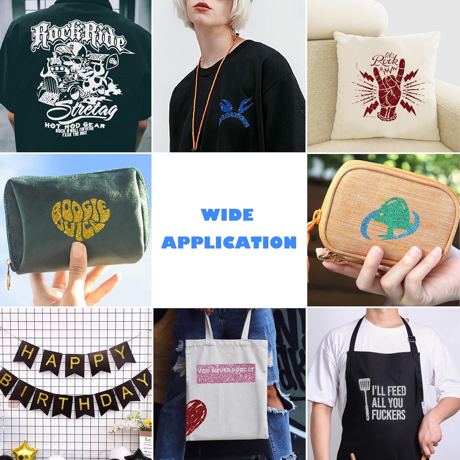 - Durable & Eco-friendly:Each Glitter HTV holds up well after repeated washes, without cracking, fading and peeling. Our Glitter htv roll is safe to apply on clothes