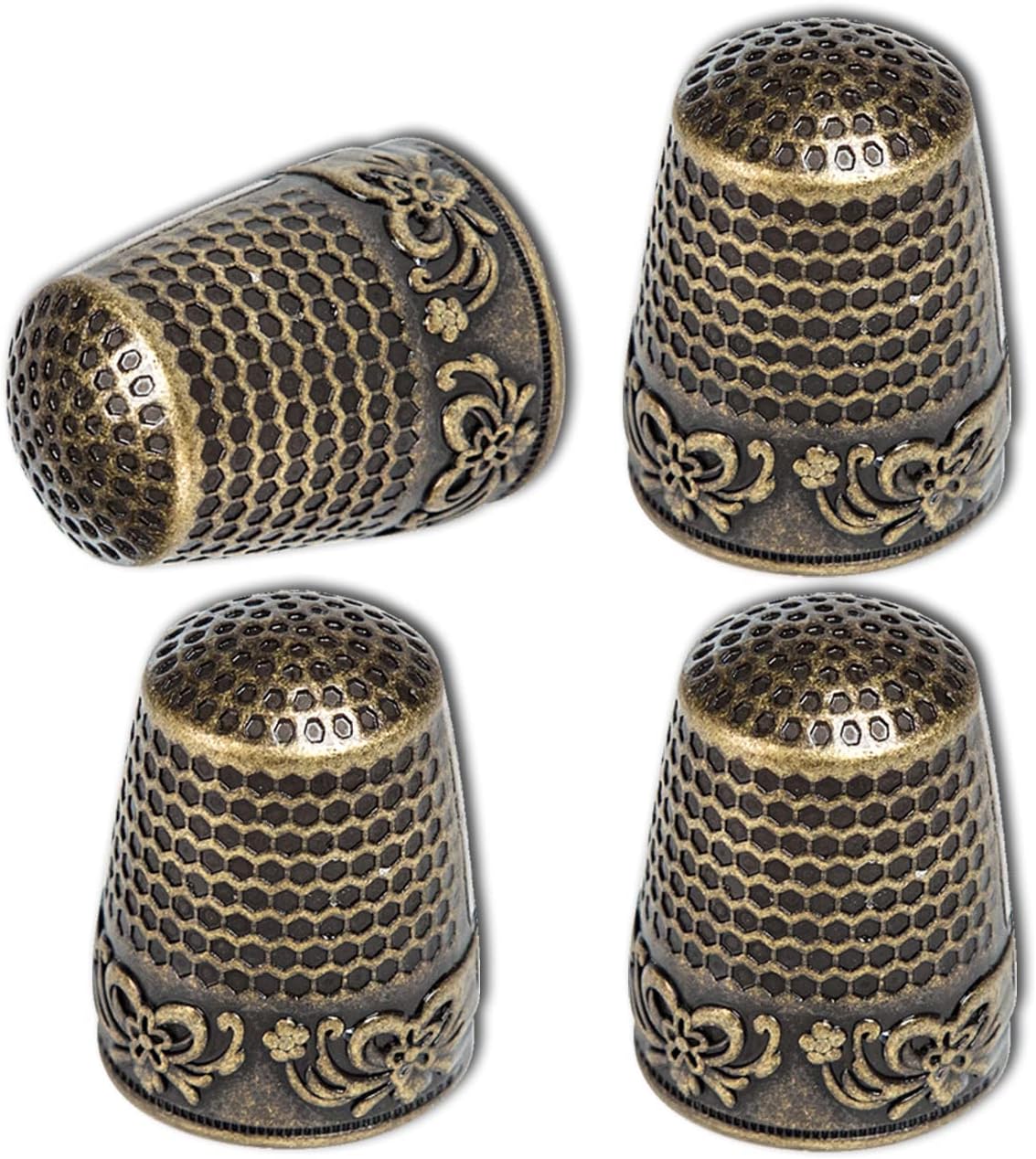 ZESION 4Pcs Sewing Thimbles, Metal Thimbles for Hand Sewing Finger Protector, Quilting Craft Accessories for Knitting Needlework DIY Tools, Bronze