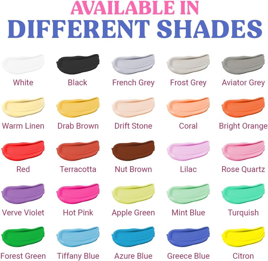 - ✔ ✔ SMOOTH, SPREADING CONSISTENCY: These paint colours for home has a perfect consistency for spreading with rollers, sponge and brush. Our chalk paint for wood furniture offers great coverage, requiring fewer paint coats, long-lasting durability, and little to no prep work required