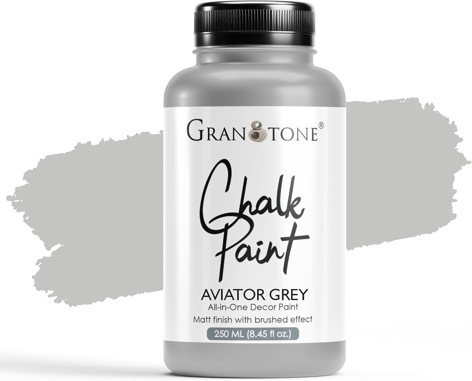 GRANOTONE Chalk Paint for Furniture | Matt-Finish Water-Based Acrylic Paint for Wood, Walls, Metal, Glass, Paper, Fabric Canvas | Maximum Coverage Chalk Paint for Kids & Adults, 250 Ml (AVIATOR GREY)