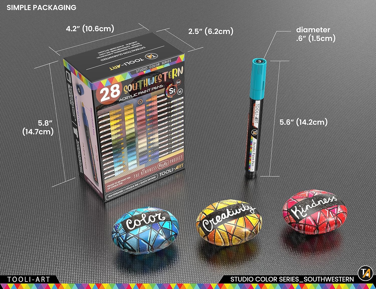 28 Southwestern Colors Acrylic Paint Pens Studio Color Series Markers Set 3mm Medium Tip, Rock Painting, Glass, Mugs, Wood, Metal, Canvas, DIY Projects, Detailing. Non Toxic, Waterbased, Quick Drying