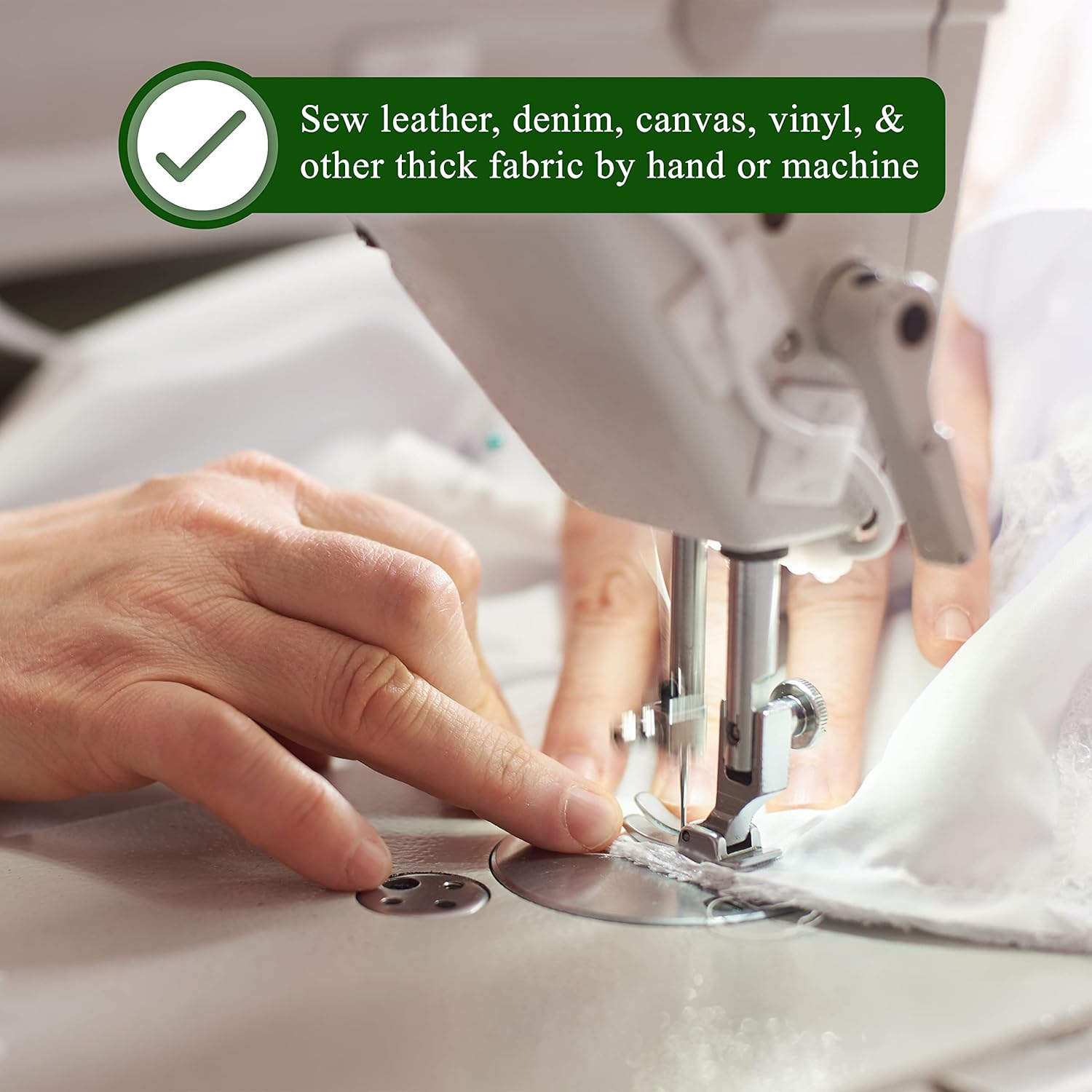 - Denim Heavy-Duty Thread for Upholstery & Quilting: The v46 bonded nylon thread serves as great extra strong sewing thread for canvas, webbing, fabric, vinyl, suede, & fur, heavy thread for coats, khaki pants, rugs, or sofas, & leather sewing thread.