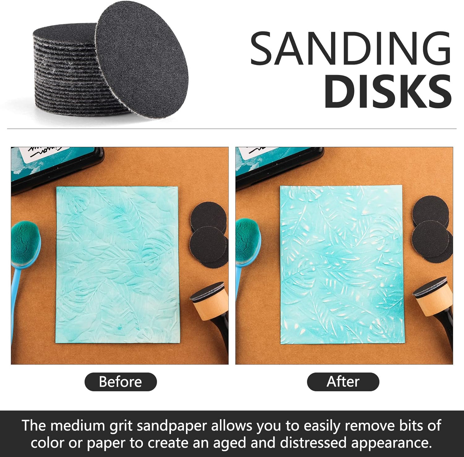 - 【Sanding Disks】These sanding disks are ideal for sanding and distressing all of your craft projects. This is medium-grit sandpaper that provides the right amount of friction to be used on cardstock, chipboard, wood, and more.
