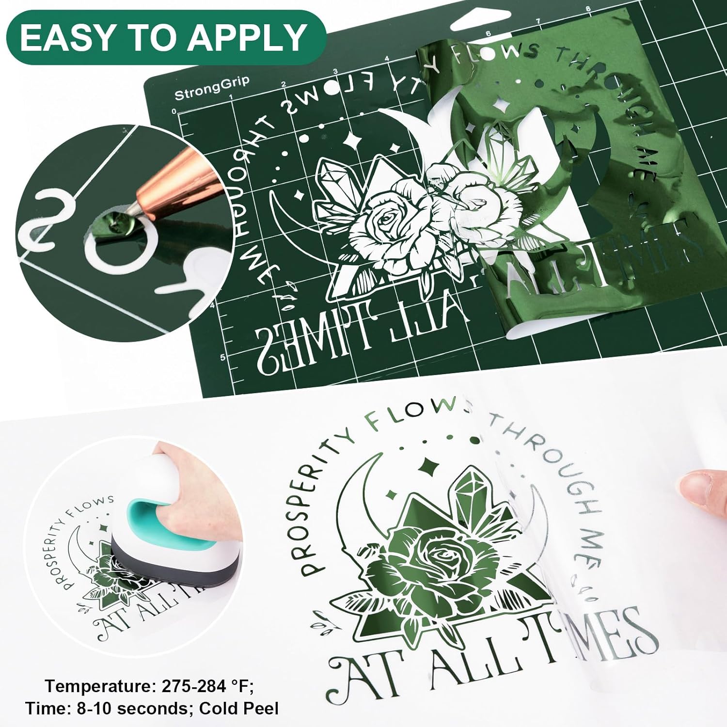 - ✨ EASY TO APPLY: Just use craft cutting machine and a home iron to get the job done. Apply for approximately 10-12 seconds at 266-284°F (130-140°C) and about 10 LBS of pressure. Be sure to cold peel.