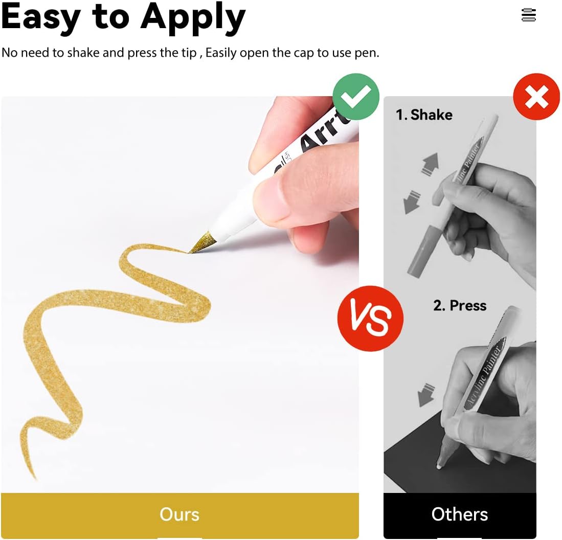 - Easy to Apply, No Pressing Down, No Shaking: With a new design, these pens are very easy to apply and no need to shake and press for tips while using, you only need to open the cap to use a pen. The round pen body made it comfortable to grip.