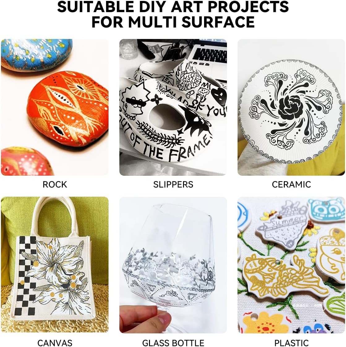 - Water-based Ink, Odourless and non-toxic: Our acrylic paint markers are water-based, so colors won't smudge or fade, and dry quickly and permanently you can enjoy your masterpiece for years to come. With high-quality certificated ink, odorless and non-toxic makes these painting pens safe and suitable for adults for all kinds of DIY paintings.