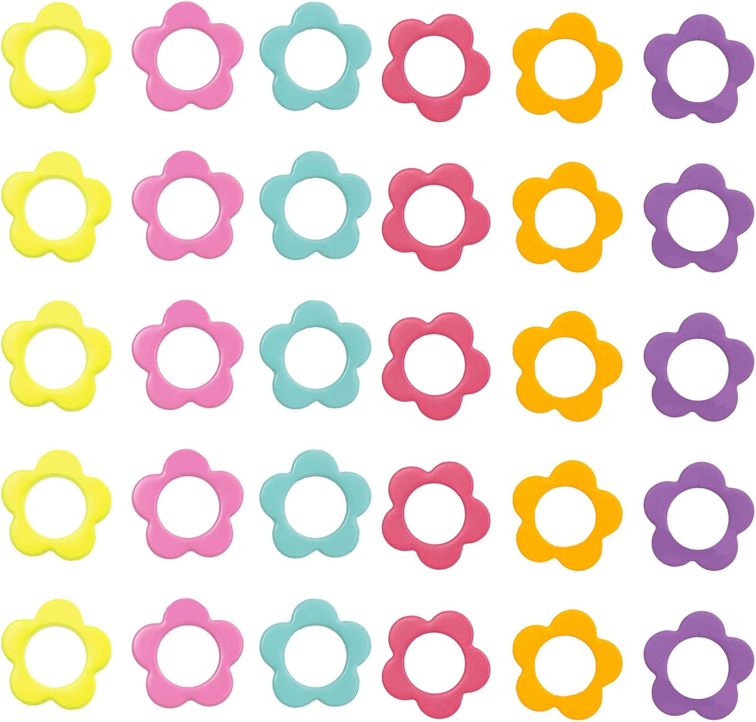 Hilsayum 30PCS Mini Size Stitch Markers Flower Shape Metal Stitch Markers Ring Multicolor Crochet Markers Knitting Weaving Tools