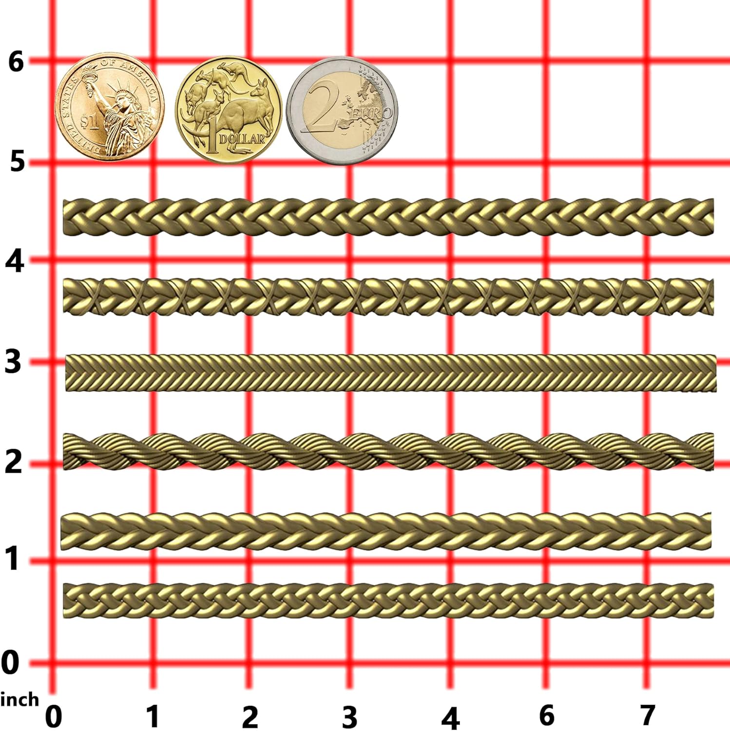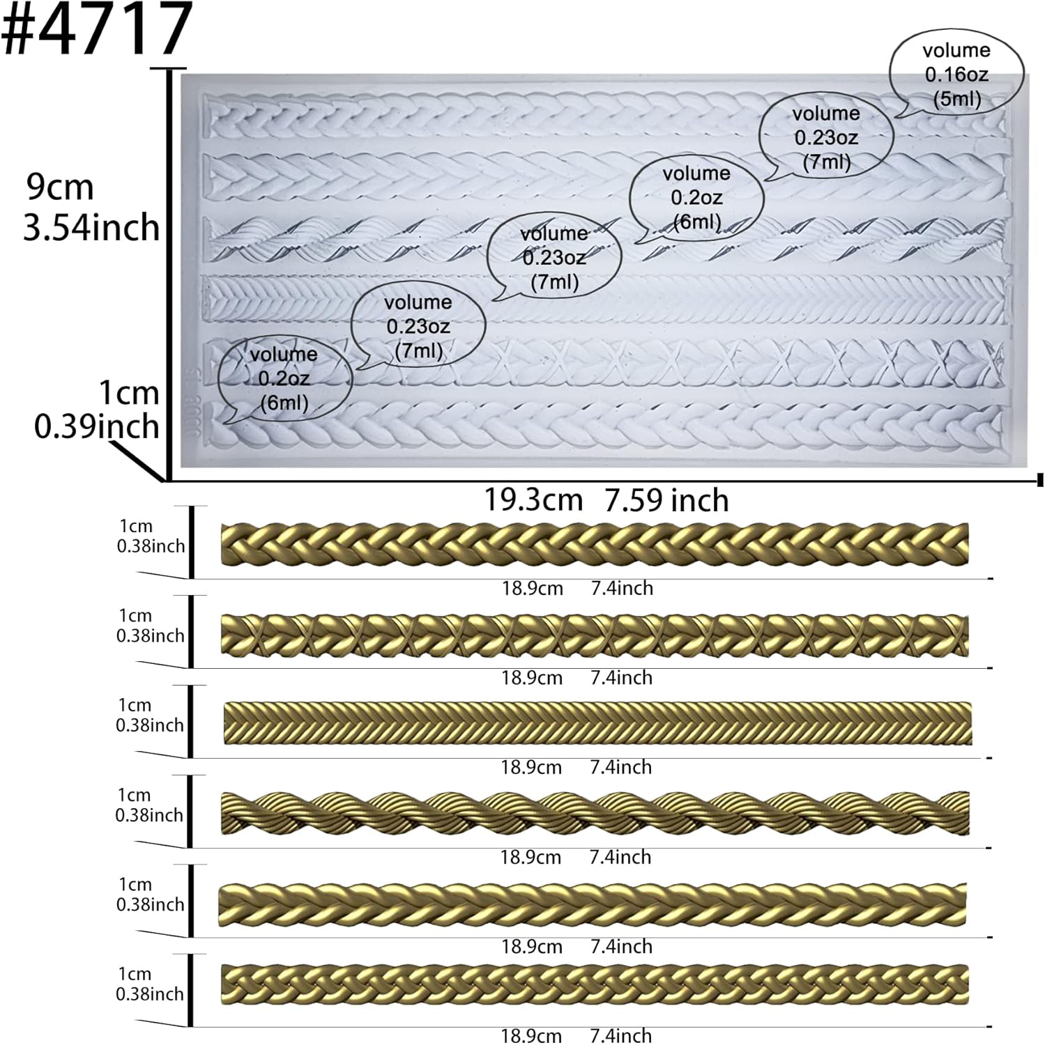 - Cavities include 6 pattern shapes: chaining string border