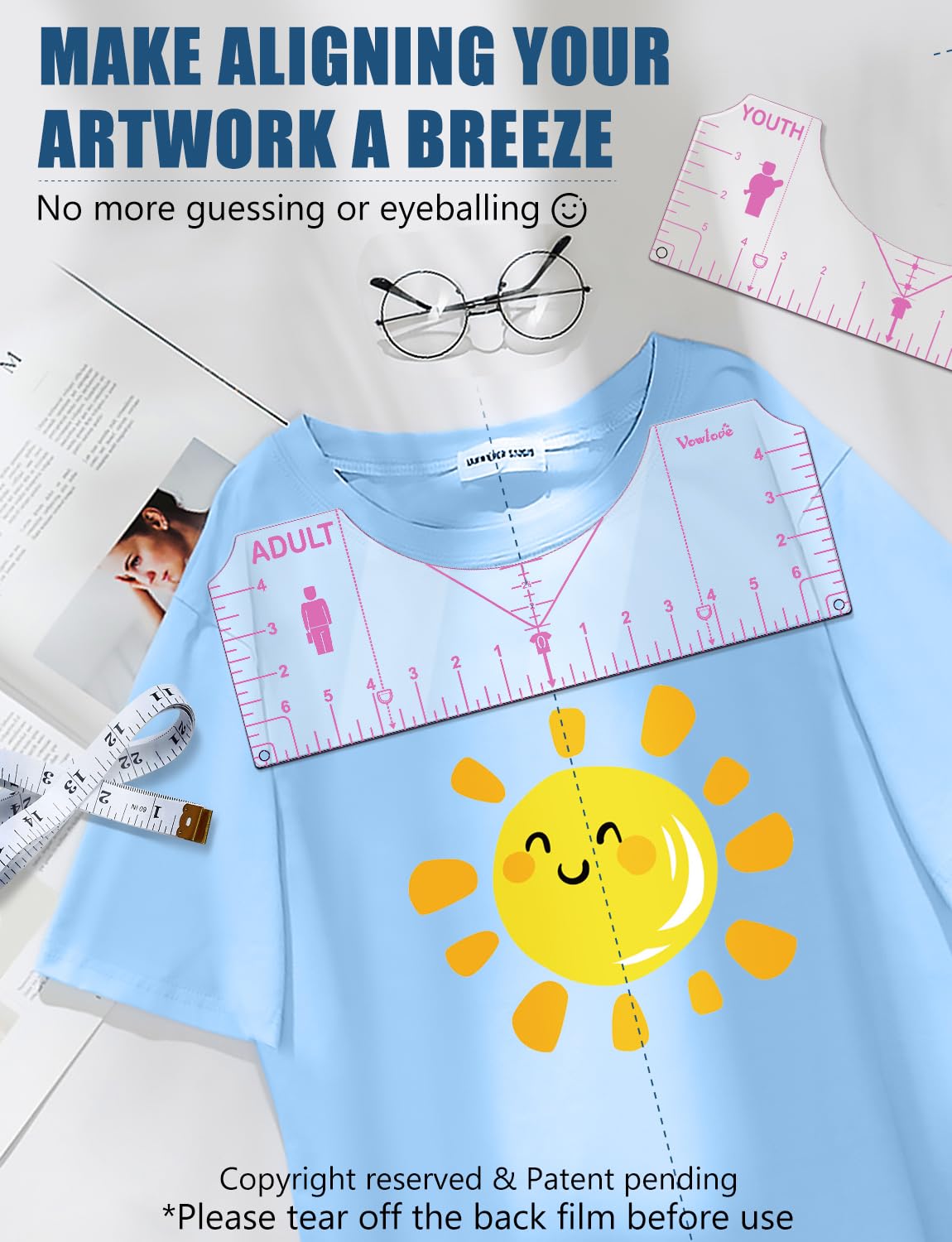 Vowlove Tshirt Ruler Guide for Cricut Heat Press, Shirt Measurement Tool Vinyl Alignment Placement Center Design DTF Template Left Pocket Logo, Sublimation Accessories Iron on HTV Heat Transfer Vinyl