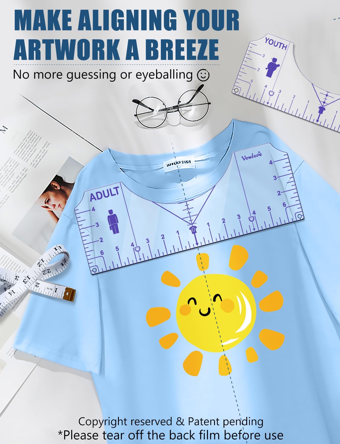 Vowlove Tshirt Ruler Guide for Vinyl Alignment, T Shirt Ruler to Center Designs Alignment Tool for Embroidery Left Chest Logo Placement Tee Shirt Guide Ruler for Heat Press T-Shirt Printing Guide Set