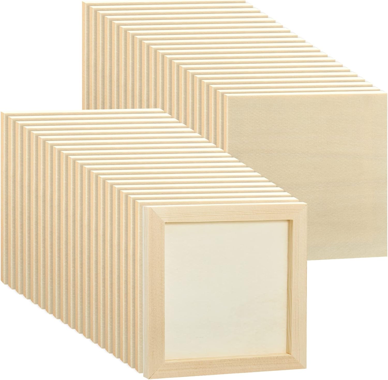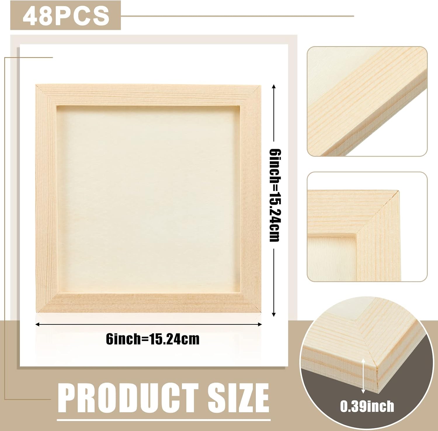 Kathfly 48 Pcs 6 x 6’’ Wood Panel Boards, Unfinished Wood Canvas Panels for Painting Crafts DIY Drawing Pouring Art Projects