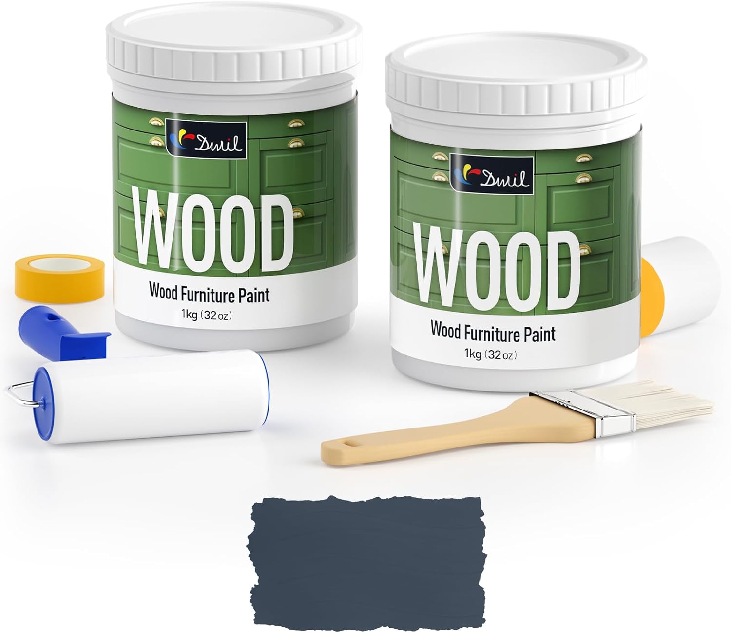 DWIL Matte Finish Furniture Paint - 64 Oz Wood Paint for Cabinets, Doors, Tables, and Dressers Refinishing - Water-Based, Non-Toxic & Odorless, Easy to Apply(Bronze Blue)-With Tools