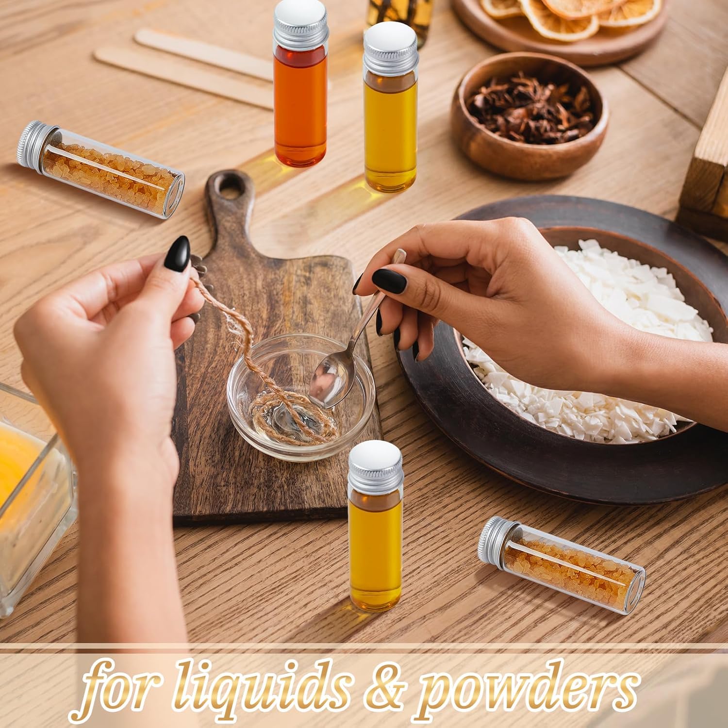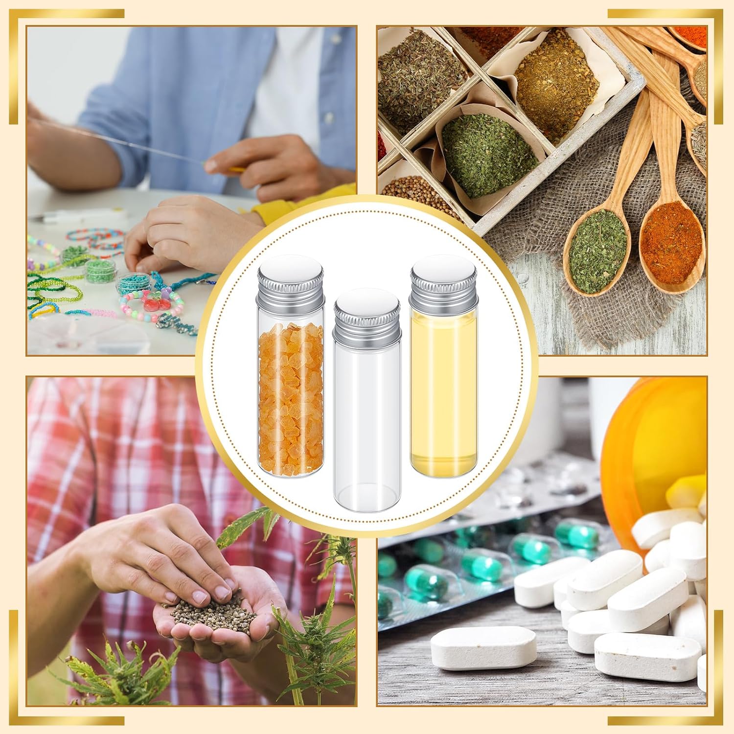 - Package Includes: the package includes 100 tiny glass bottles, which are about 15 ml, and the size of the bottle is about 0.87 x 2.76 inches/ 22 x 70 mm, the diameter of the mouth of a bottle is about 0.55 inches/ 14 mm, suitable to contain so many things, and in the package coming to you with a lid, which is made of aluminum, matched with the bottle, the diameter of the lid is about 0.79 inches/ 20 mm, you don't need to worry about the stuff inside will spill out