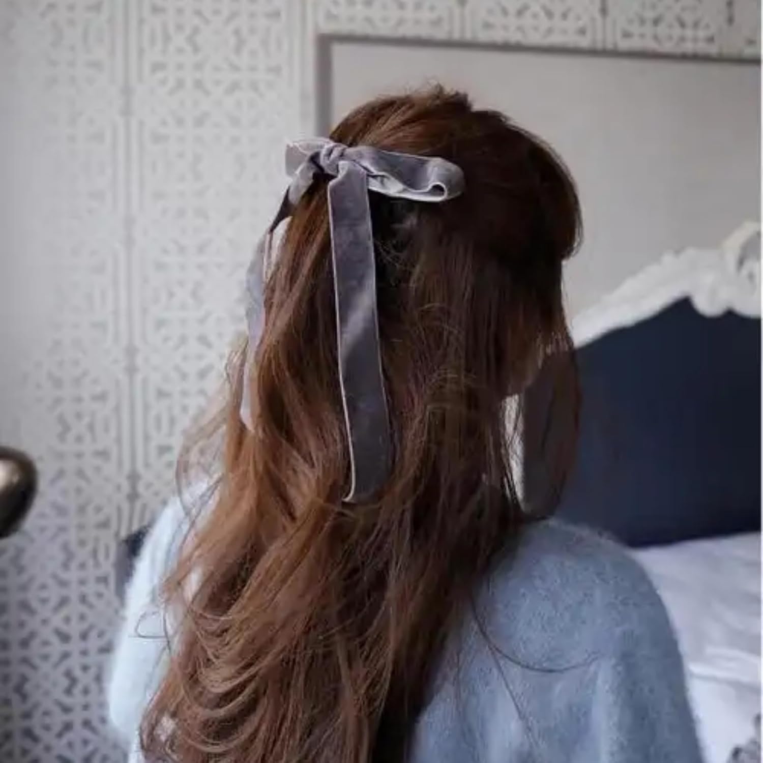 - 1" X 15 Yards Grey Velvet Ribbon.