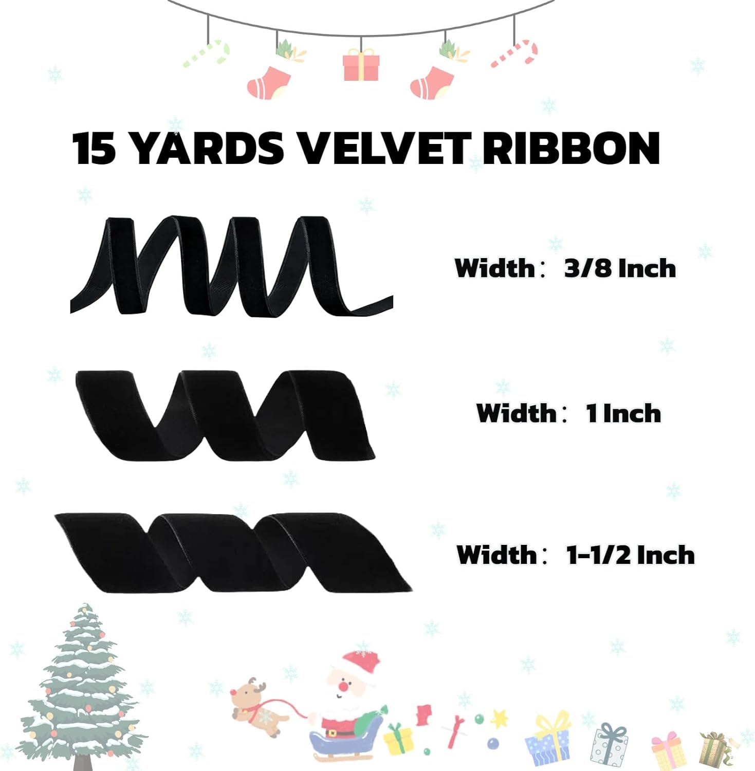 15 Yards Velvet Ribbon 1 Inch Single Face Black Velvet Ribbon Spool Prefect for Wedding, Ribbons for Gift Wrapping, Vintage Christmas Decor Tree Ornaments Wreath Hair Bows, Ribbons for Crafts