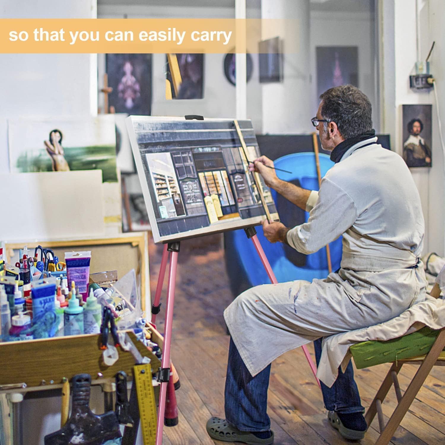RRFTOK Artist Easel Stand, Aluminum Metal Adjustable Easel for Painting Canvases Height from 17 to 66 Inch,Carry Bag for Table-Top/Floor Drawing and Displaying(Pink)