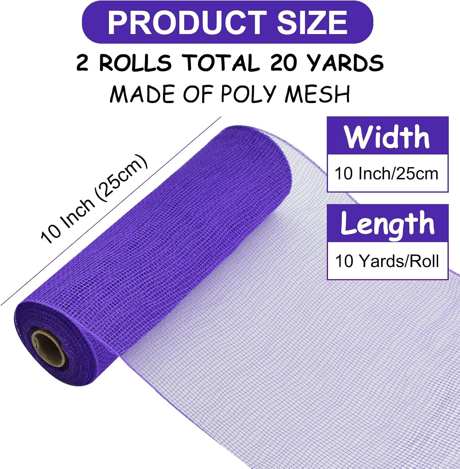 TONIFUL 2 Rolls 10 Inch Purple Decorative Mesh Ribbbon Rolls, Fabric Mesh for Mesh Wreath Supplies, Front Door Wreath Crafts Tree Decor Christmas NewYears Halloween Decoration (10 yds/roll)