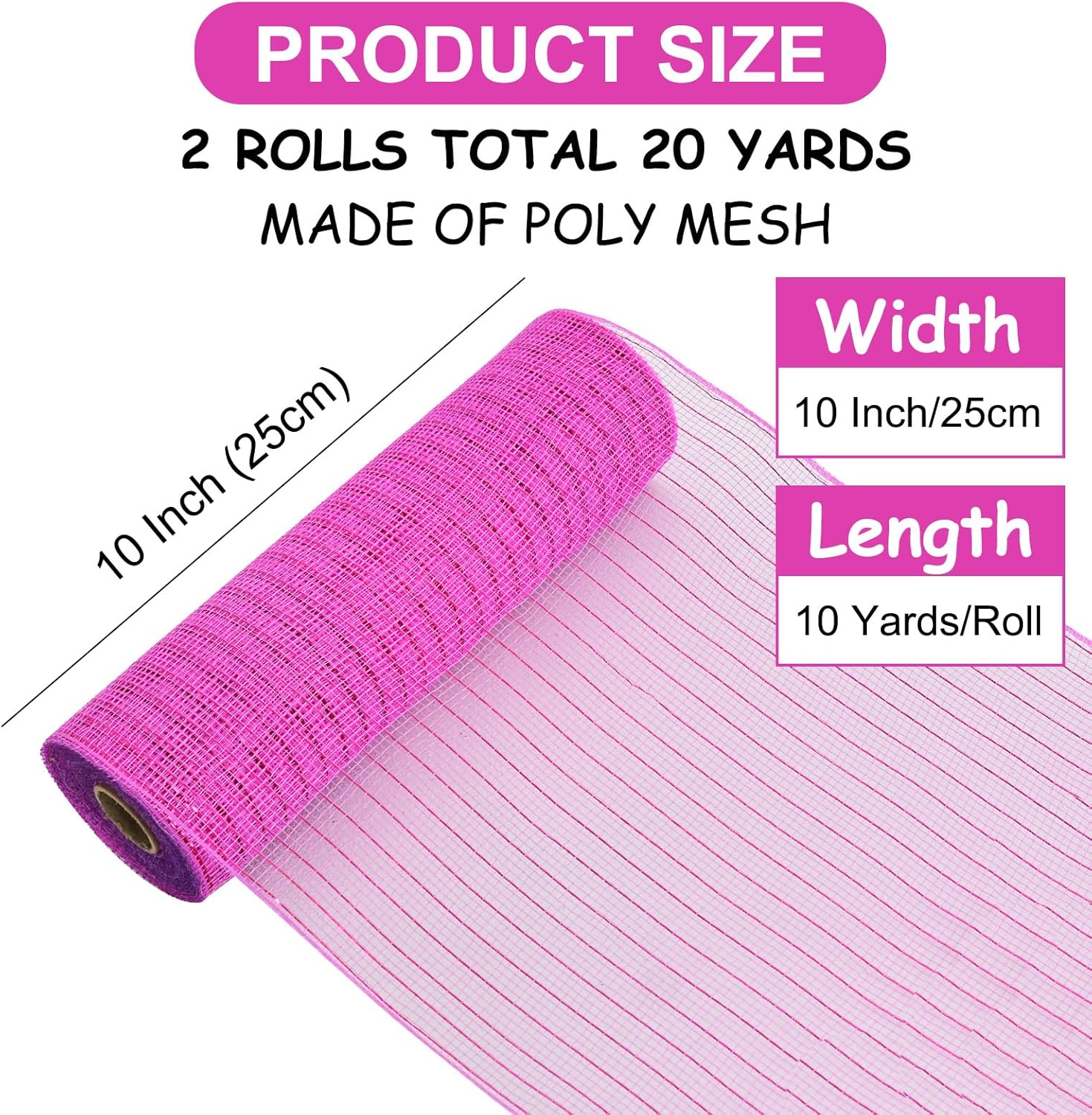 TONIFUL 2 Rolls 10 Inch Hotpink Decorative Mesh Ribbbon Rolls, Fabric Mesh with Foil for Wreath Supplies, Front Door Wreath Crafts Tree Decor Christmas NewYears Halloween Decoration (10 yds/roll)