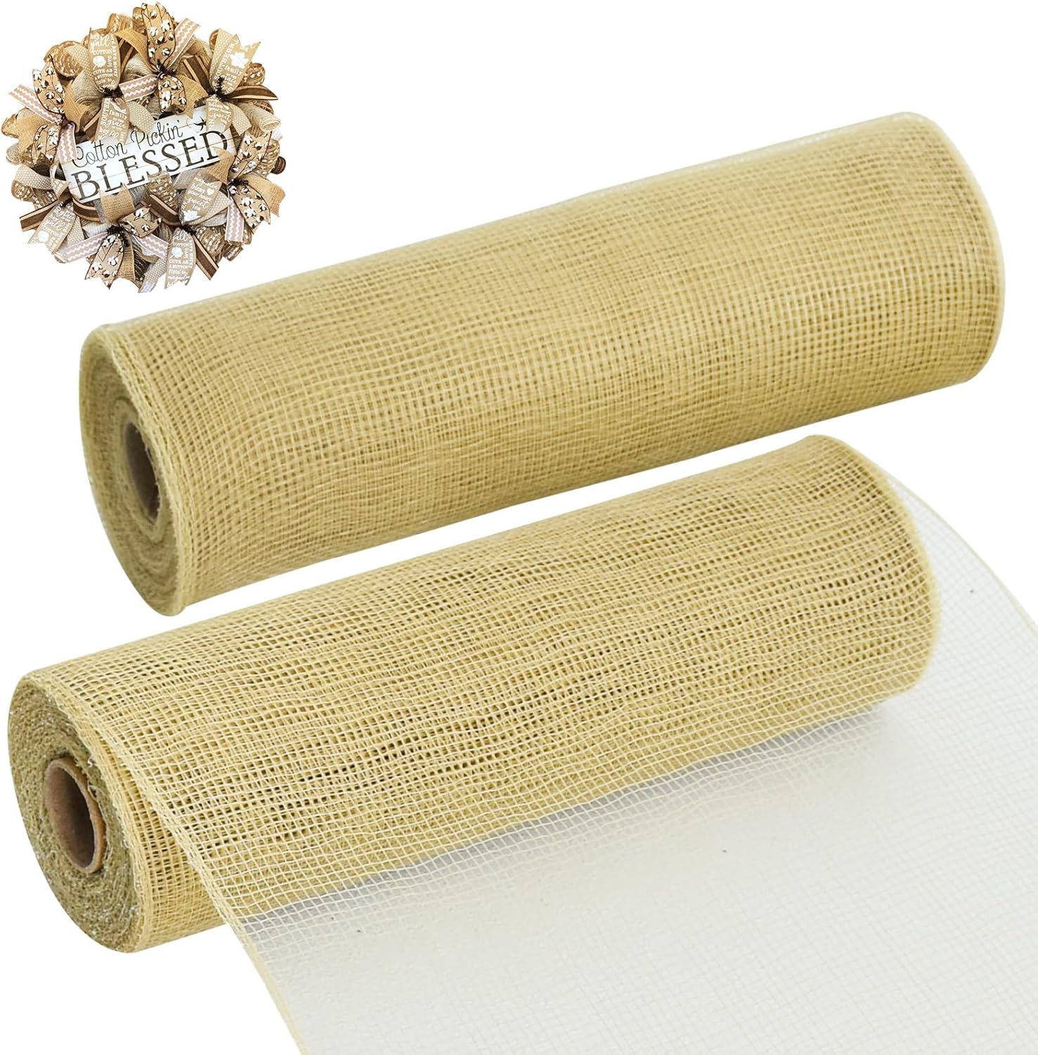TONIFUL 2 Rolls 10 Inch Burlap Natural Decorative Mesh Ribbon Rolls, Perfect for Wreaths, Swags, Christmas Trees, Home Decoration, and Creative Crafts