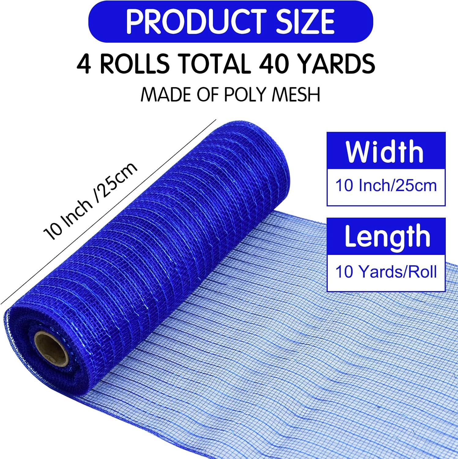 TONIFUL 4 Rolls 10 Inch Blue/Silve/White Decorative Mesh Ribbbon Rolls, for Wreath Supplies Front Door Wreath Craft Tree Decor Christmas NewYears Blue Decoration (30ft/roll, 120ft/Set)
