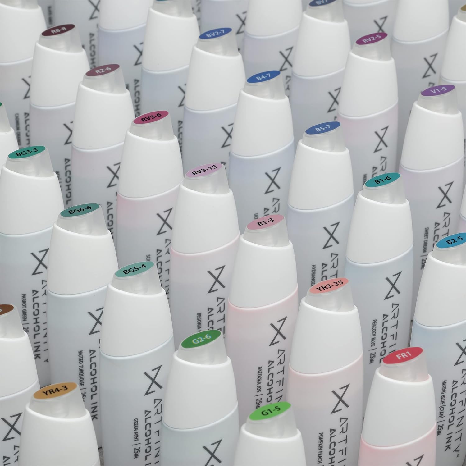 - Variety: We offer 100 beautiful Colors for our Artfinity Alcohol Inks; Organize your ink with Color-coded twist on caps and introduce the best Quality alcohol ink to your studio!