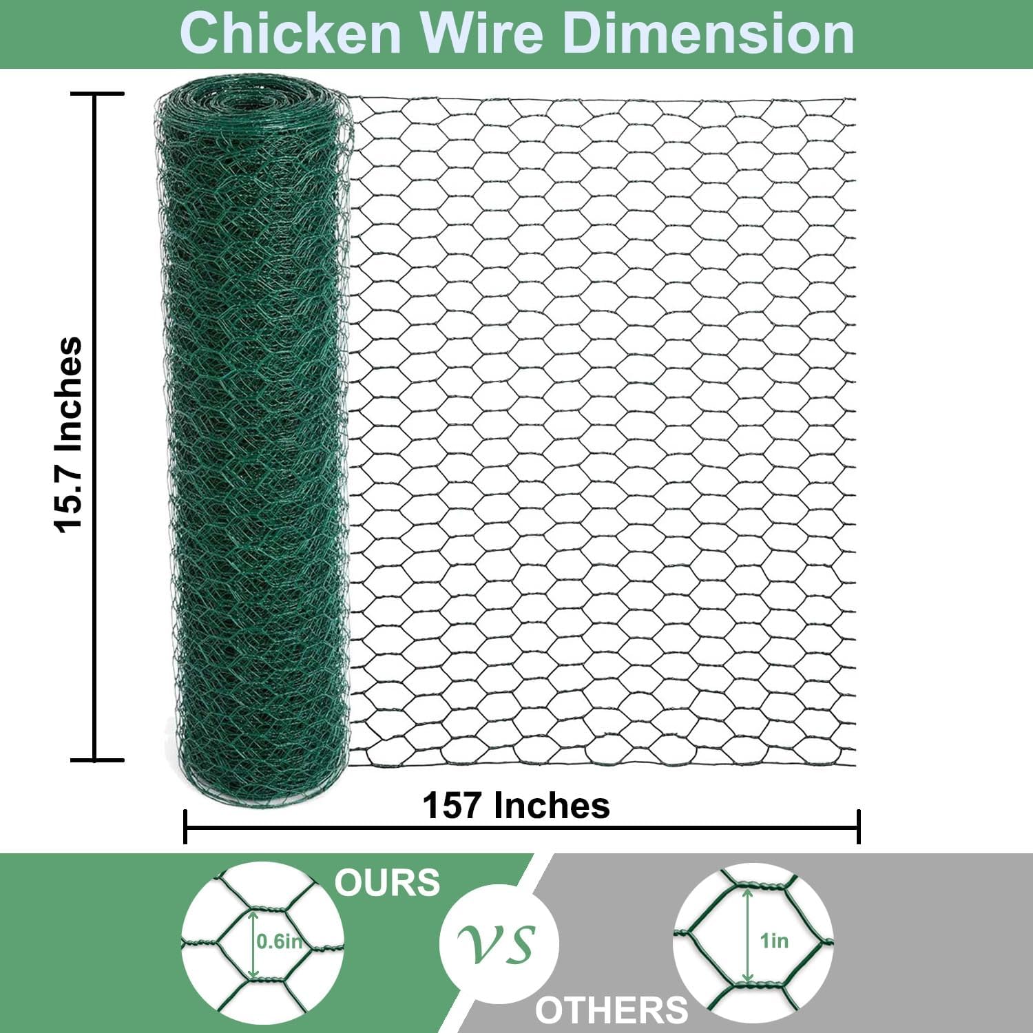 - 【High-quality Coated Chicken Wire】 Our green floral chicken wire is made of high-quality galvanized iron inside and green PVC coating outside for high rust & corrosion resistance to ensure a longer life against the elements. Moreover, the PVC coating is soft to prevent injury while making craft projects