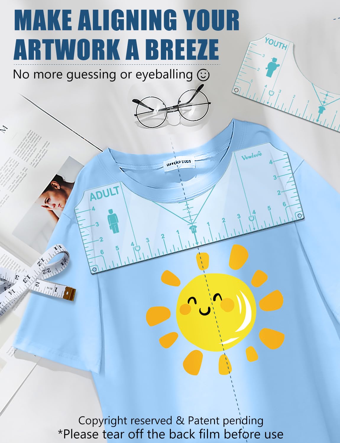 Vowlove T-Shirt Ruler Guide Alignment Tool to Center Designs, All Size Tshirt Measurement Tool for Heat Press Accessories, Left Chest Logo, DTF, Sublimation Blanks, Heat Transfer Vinyl HTV