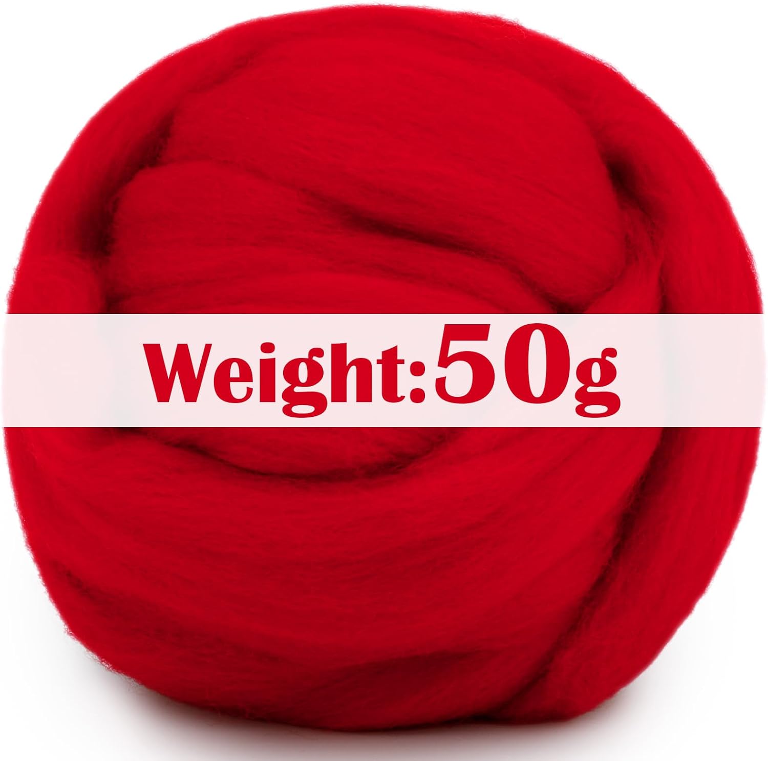 Mayboos Wool Roving Yarn, 1.76oz Colored Natural Wool Roving,Wool Felting Supplies Pure Wool Chunky Yarn for Wet Felting handcrafts and Spinning (Red Color)