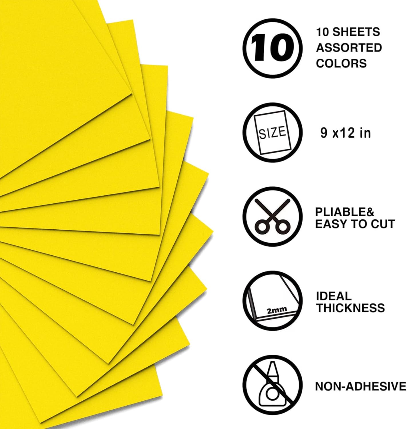 MEARCOOH Yellow Foam Sheets Crafts 9x12 Inch 2mm Eva Color Craft Foam Paper for Crafts Project Preschoolers Classroom Scrapbooking DIY Cosplay(10 Sheets)