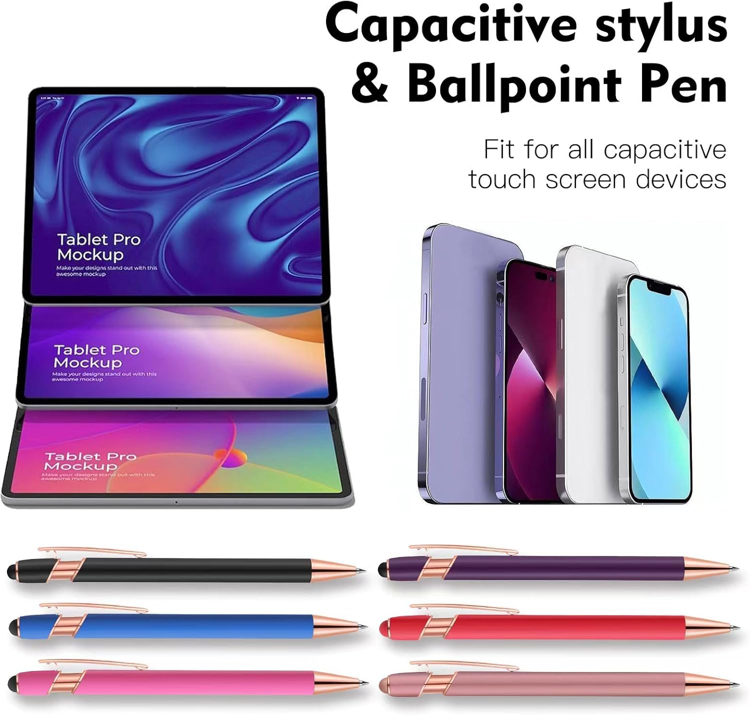 - 2 in 1 Design stylus pen: touch screen stylus and ballpoint pen; One end has a sensitive stylus, and the other end is equipped with a quality black ink ballpoint for convenient use; smooth and long-lasting ink flow writing; Press the stylus pen top to extend the pen for smooth and long-lasting ink flow writing;