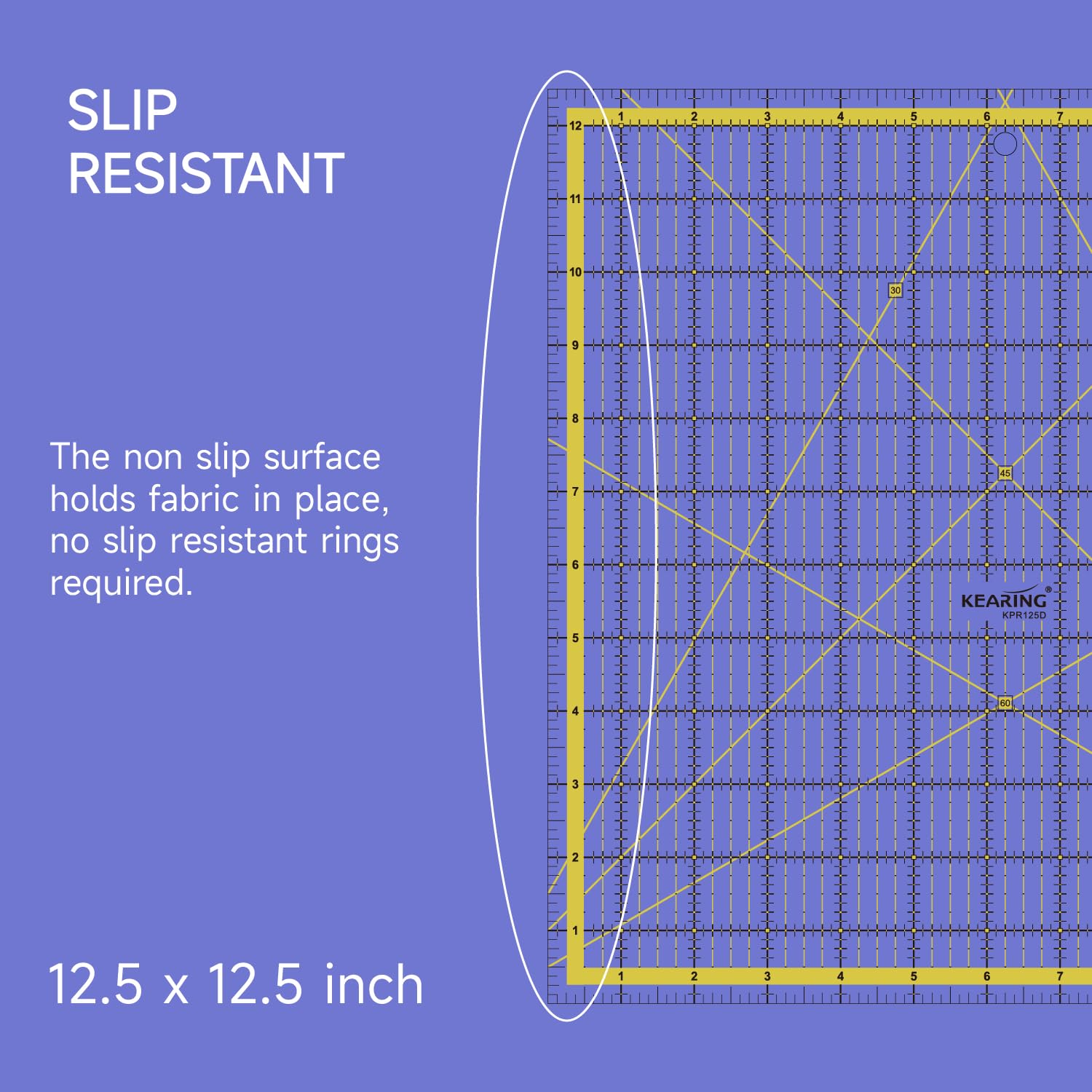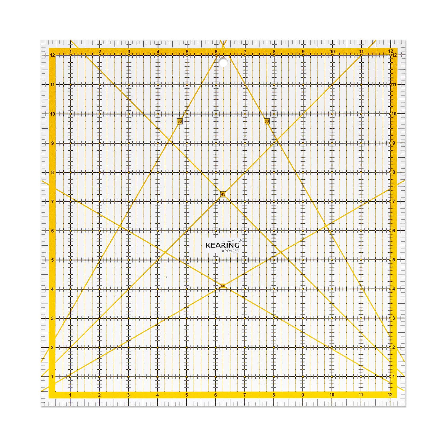 KERING Extra-Large Quilting Ruler - 12.5x12.5 inch Anti-Slip Acrylic Ruler for Patchwork Piecing, Bias Strips & Rotary Cutting, Professional Quilter's Must-Have Tool